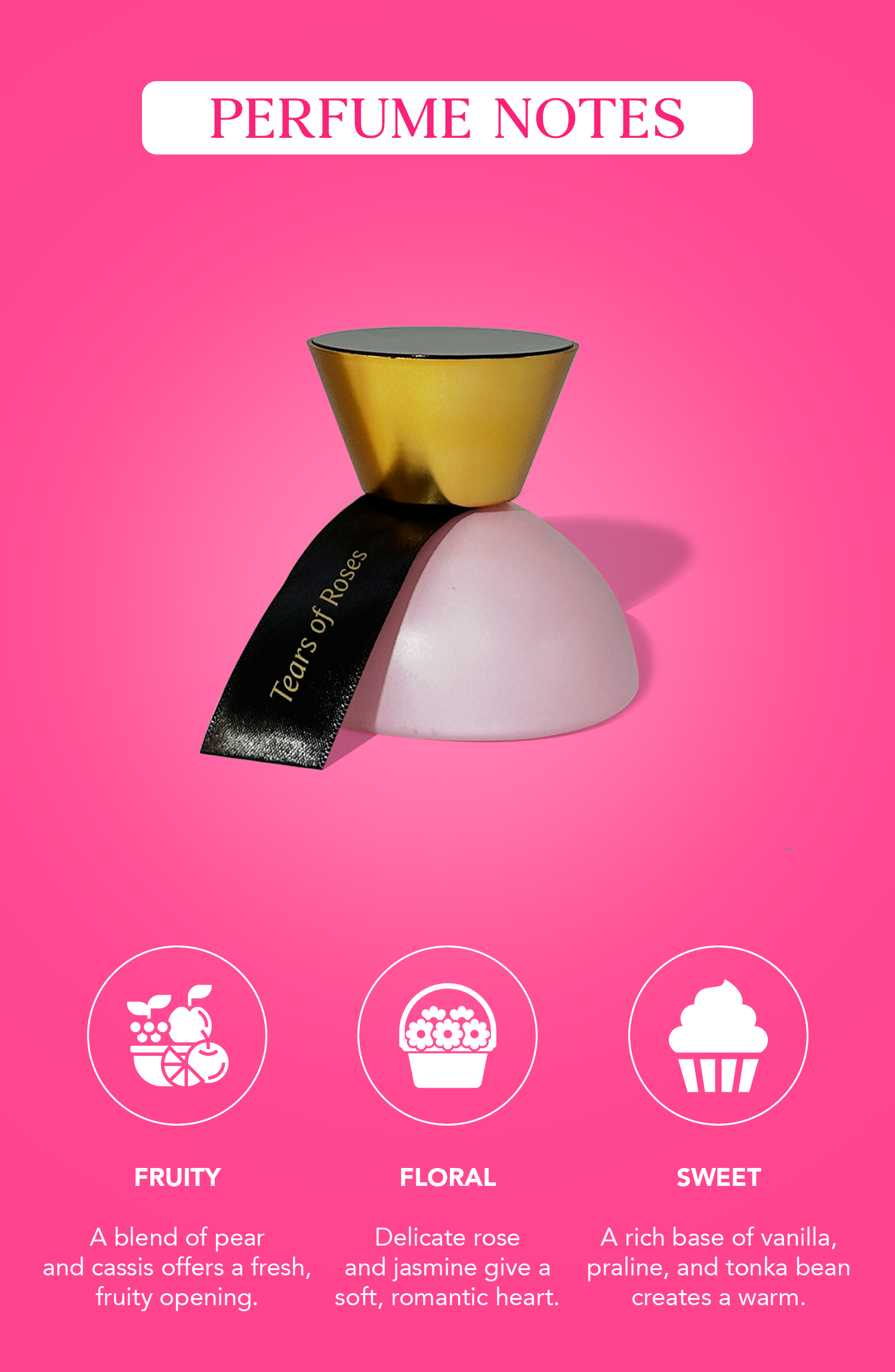 Rose, Amber, Fruity, Vanilla, Floral, Soft Spicy, Patchouli, Tropical, Woody, Powdery