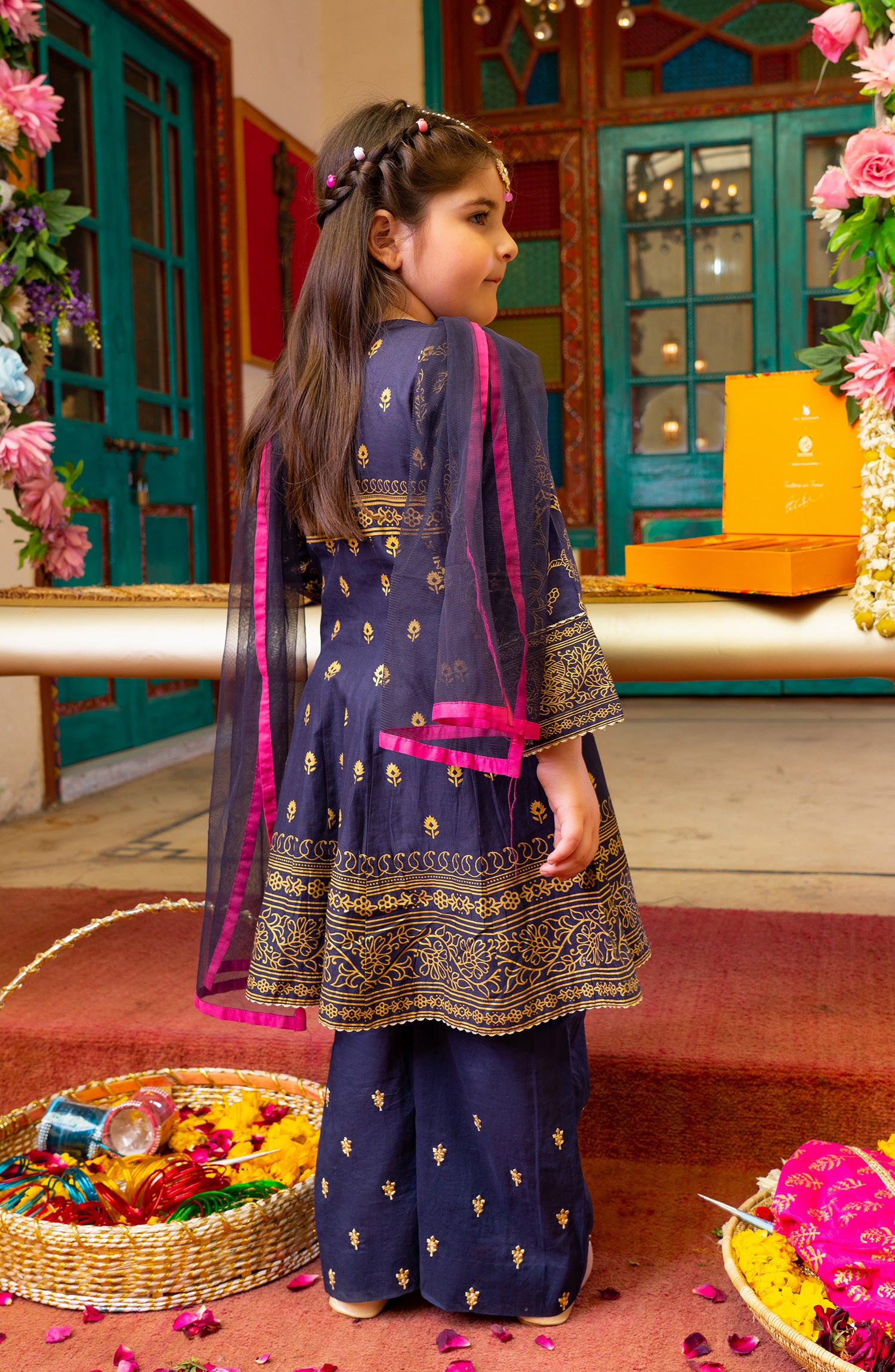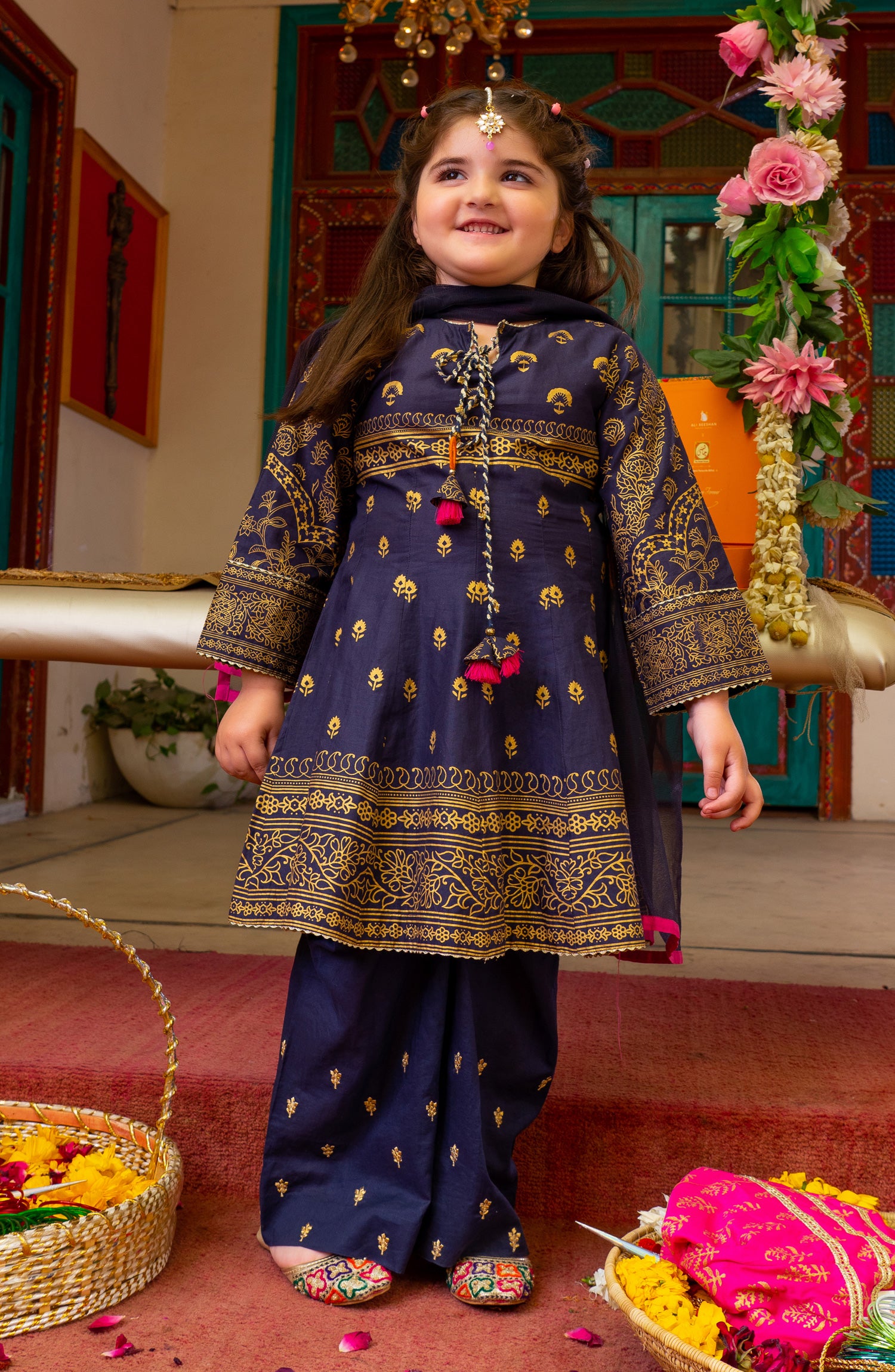 Embellishment: Dori Tassel On Neck Line, Lace Detail on Sleeves, Neckline and daman