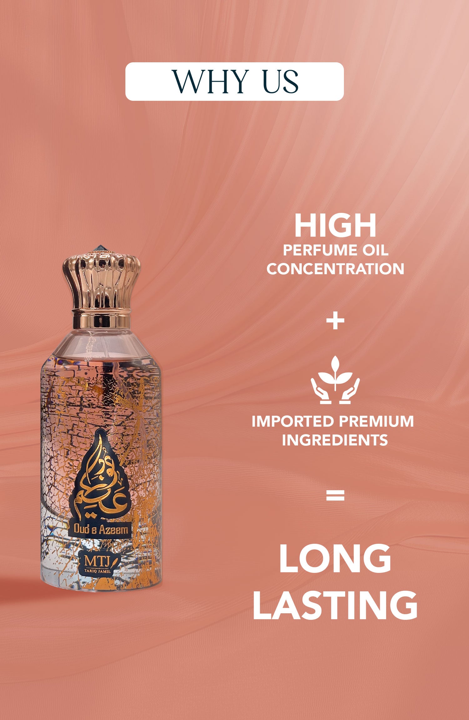 Welcome to the world of MTJ Fragrances, where every scent is a story waiting to be told and every fragrance is a journey of sensory delight. With a rich heritage in crafting exceptional perfumes, MTJ Fragrances is a name synonymous with elegance, luxury, and the art of olfactory expression. MTJ Oud E Azeem, tells the story of the brave and audacious legacy of a royal king. A woody oriental fragrance that evokes the stable, powerful nature of an established and flourishing kingdom. Intense smoky incense and its smoldering grip on sharp saffron and cardamom adds new dimensions - evoking a powerful aura. The Cypriot is unleashed - enhancing the exotic woodiness of sandalwood while imbuing it with vetiver undertones - for an unforgettable silage. Rich patchouli finally dominates the scene, while ambery cashmere provides a sense of success and victory.