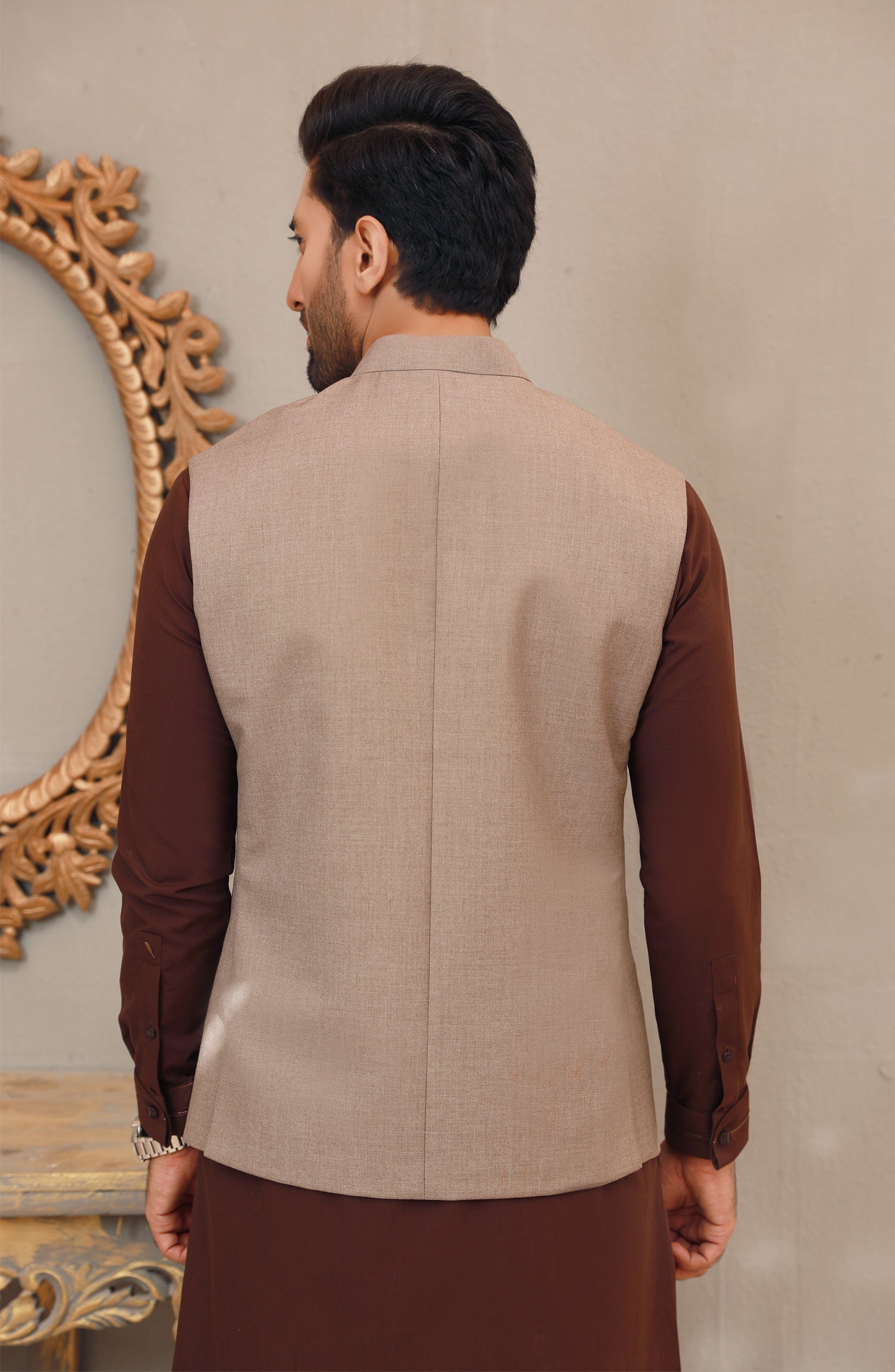 WINTER'22 MEN FORMAL PLAIN WAISTCOAT FAWN
