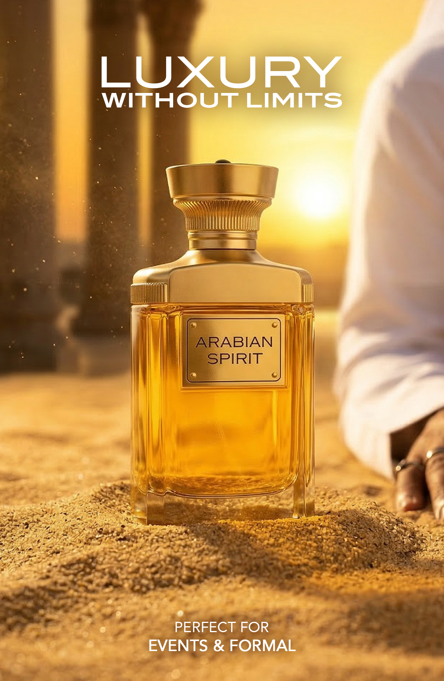 Arabian Spirit embodies the grandeur and mystery of the Middle East. The fragrance opens with an energetic burst of aromatic spices and herbs that awaken the senses. As it develops, a smoky and woody heart emerges, enriched with tobacco and oud for a luxurious depth. The scent finishes with a bold and enduring base of leather, patchouli, and vetiver, leaving a powerful and memorable signature.