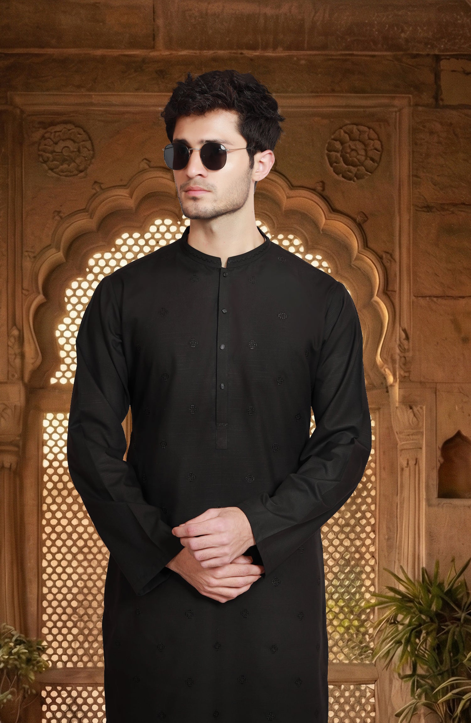 BLACK BLENDED EMBROIDERED KURTA