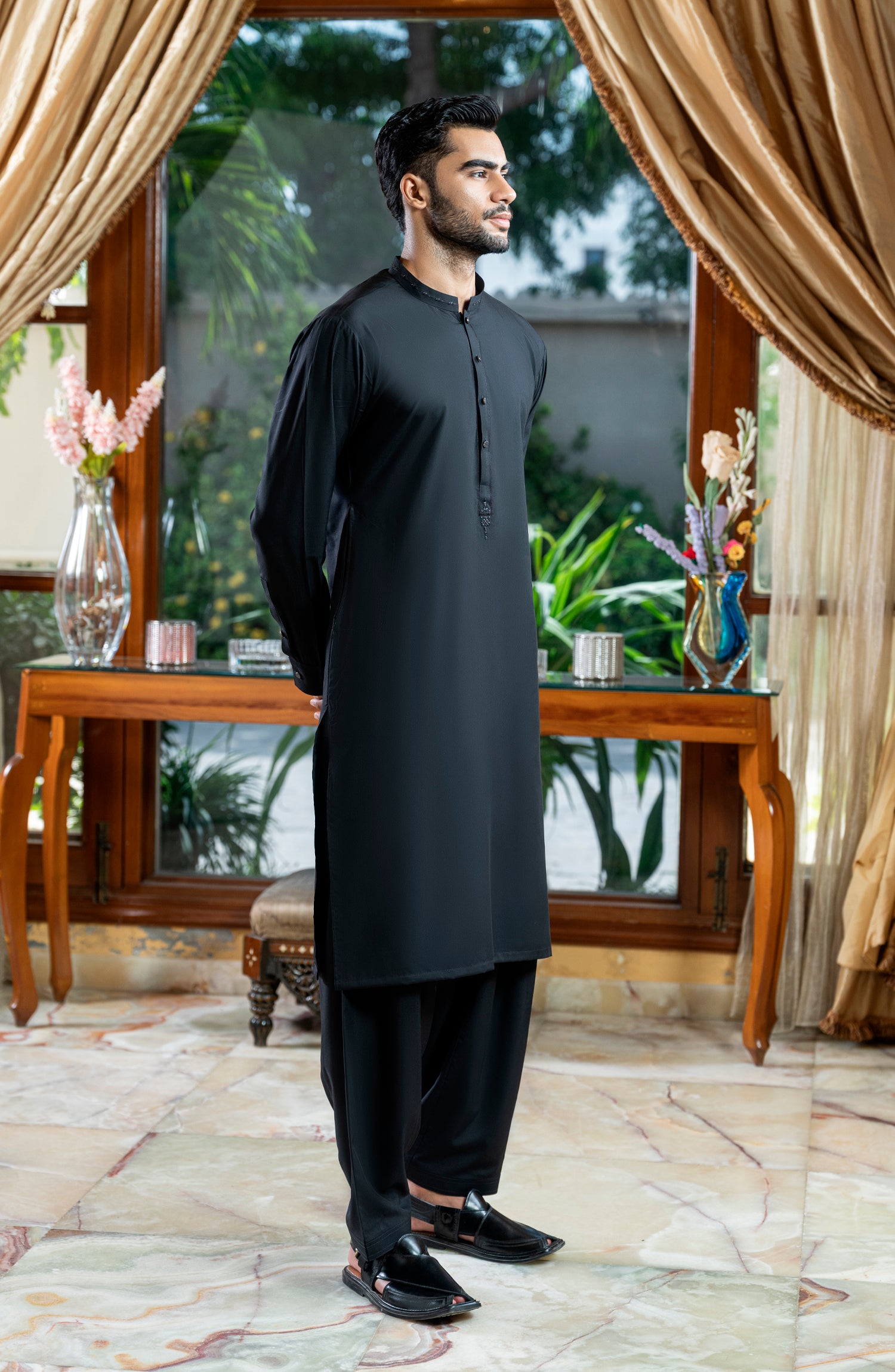 BLACK EMBROIDERED BLENDED KAMEEZ SHALWAR