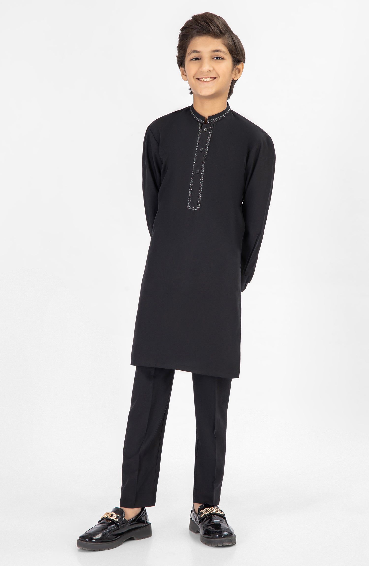 BLACK EMBROIDERED KURTA PAJAMA