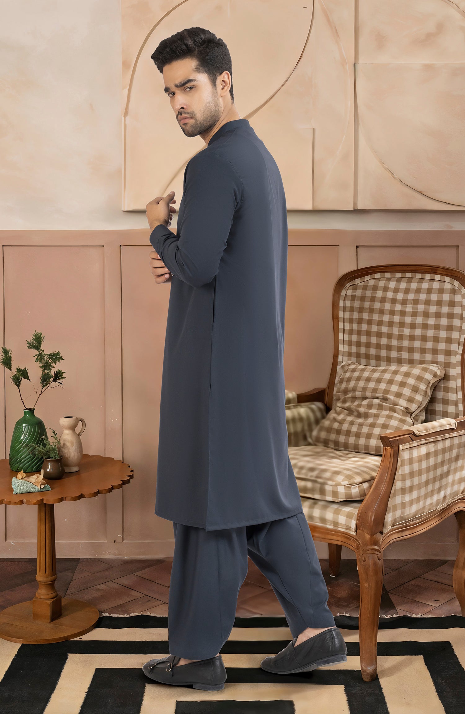 BOTTLE-GREEN BLENDED KAMEEZ SHALWAR