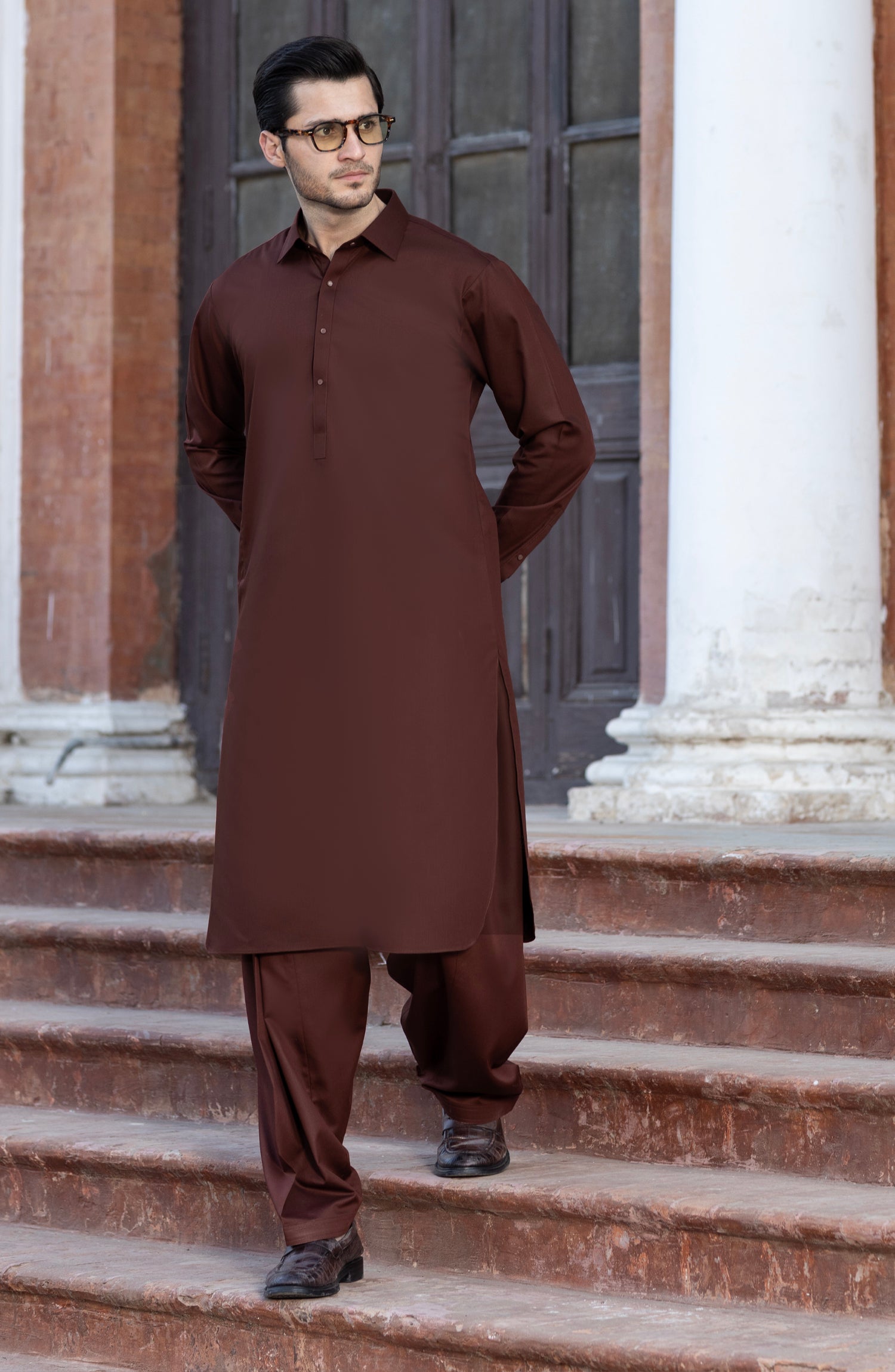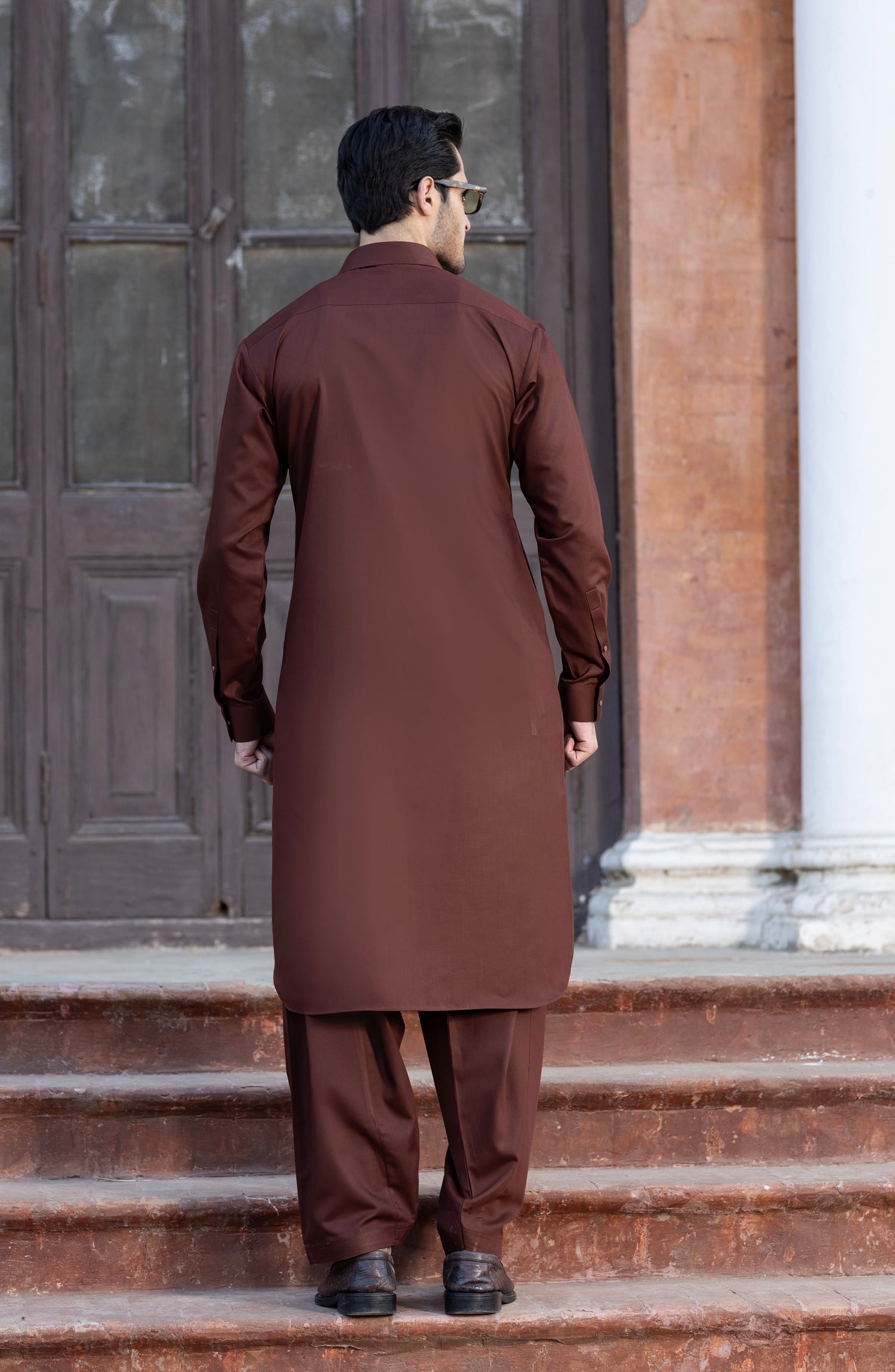 BRICK BROWN BLENDED KAMEEZ SHALWAR