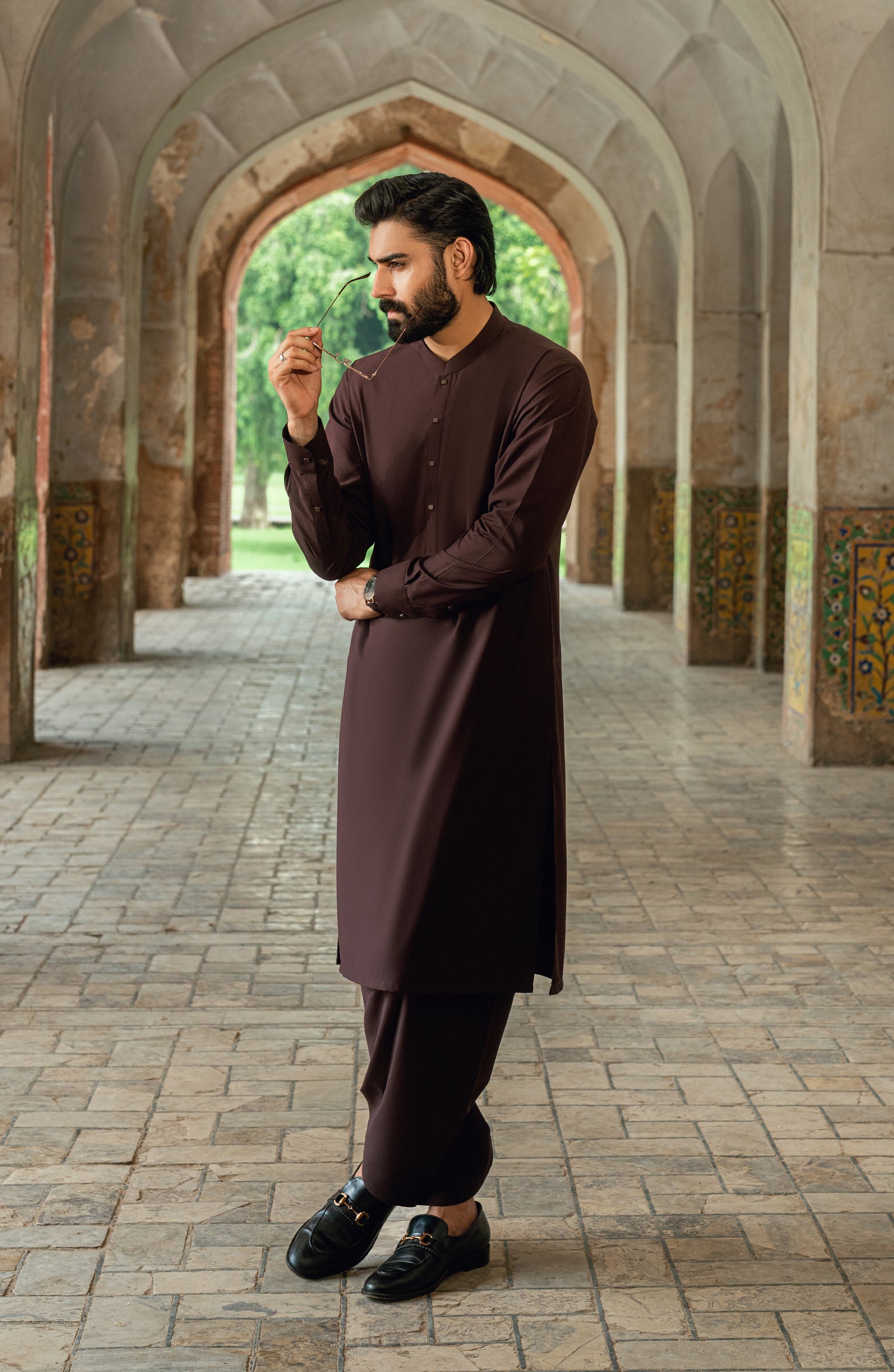 BURGUNDY BLENDED KAMEEZ SHALWAR