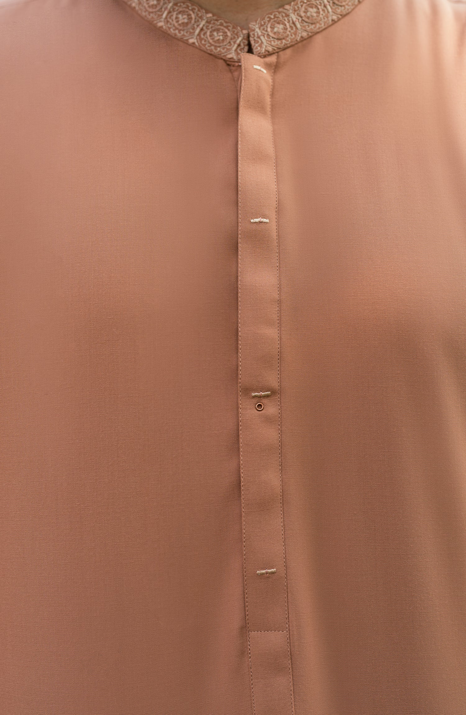 CAMEL BLENDED EMBROIDERED KAMEEZ SHALWAR