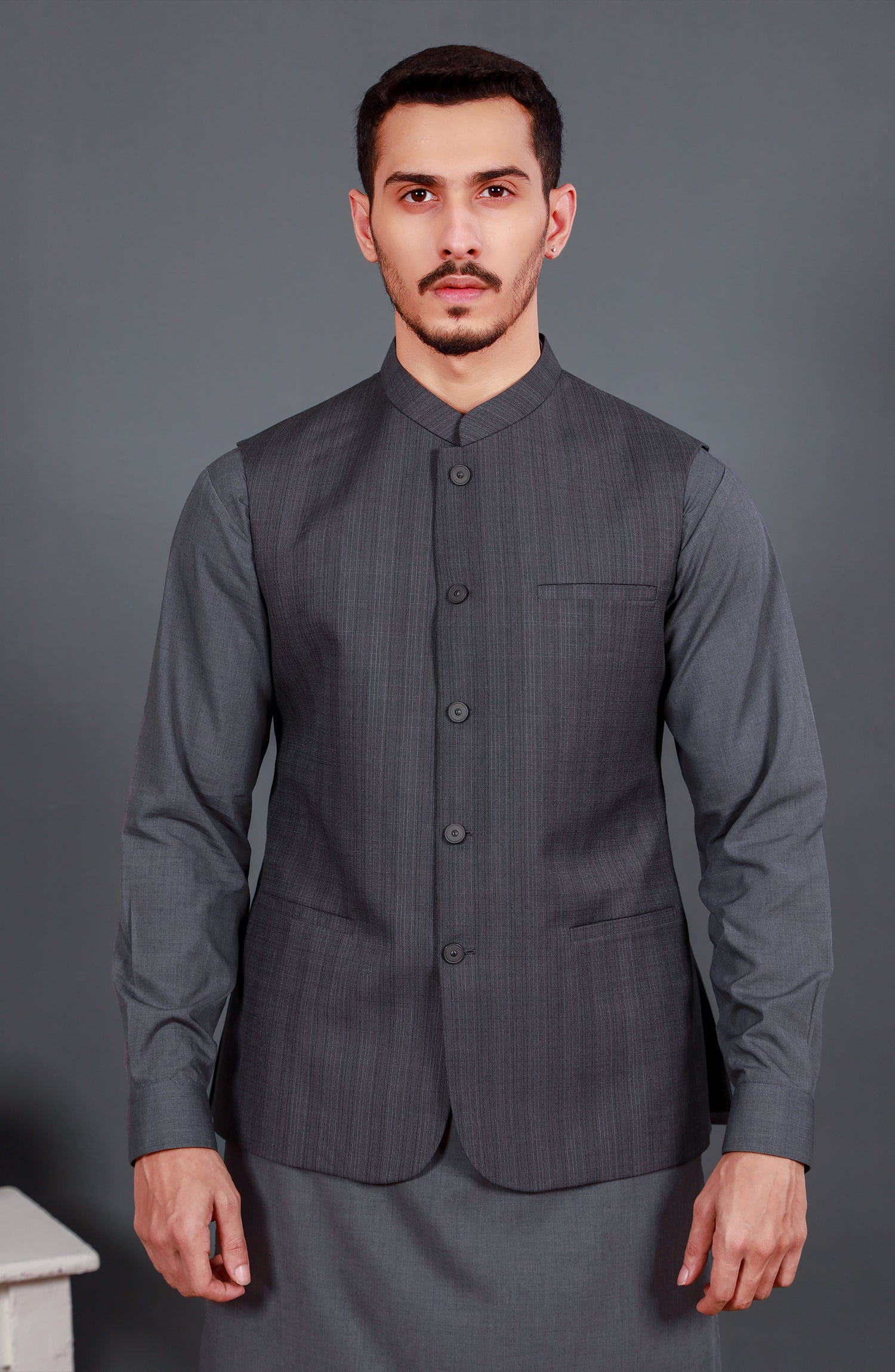 CHARCOAL KAMEEZ SHALWAR WITH WAIST COAT