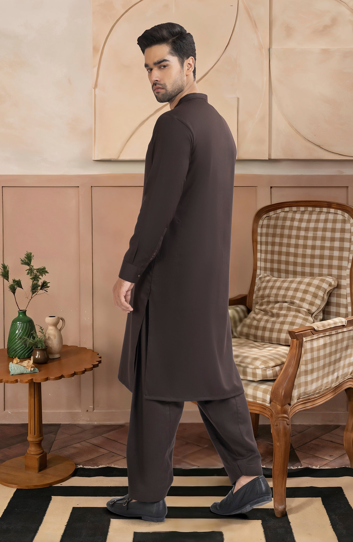 CHOCOLATE BROWN BLENDED EMBROIDERED KAMEEZ SHALWAR