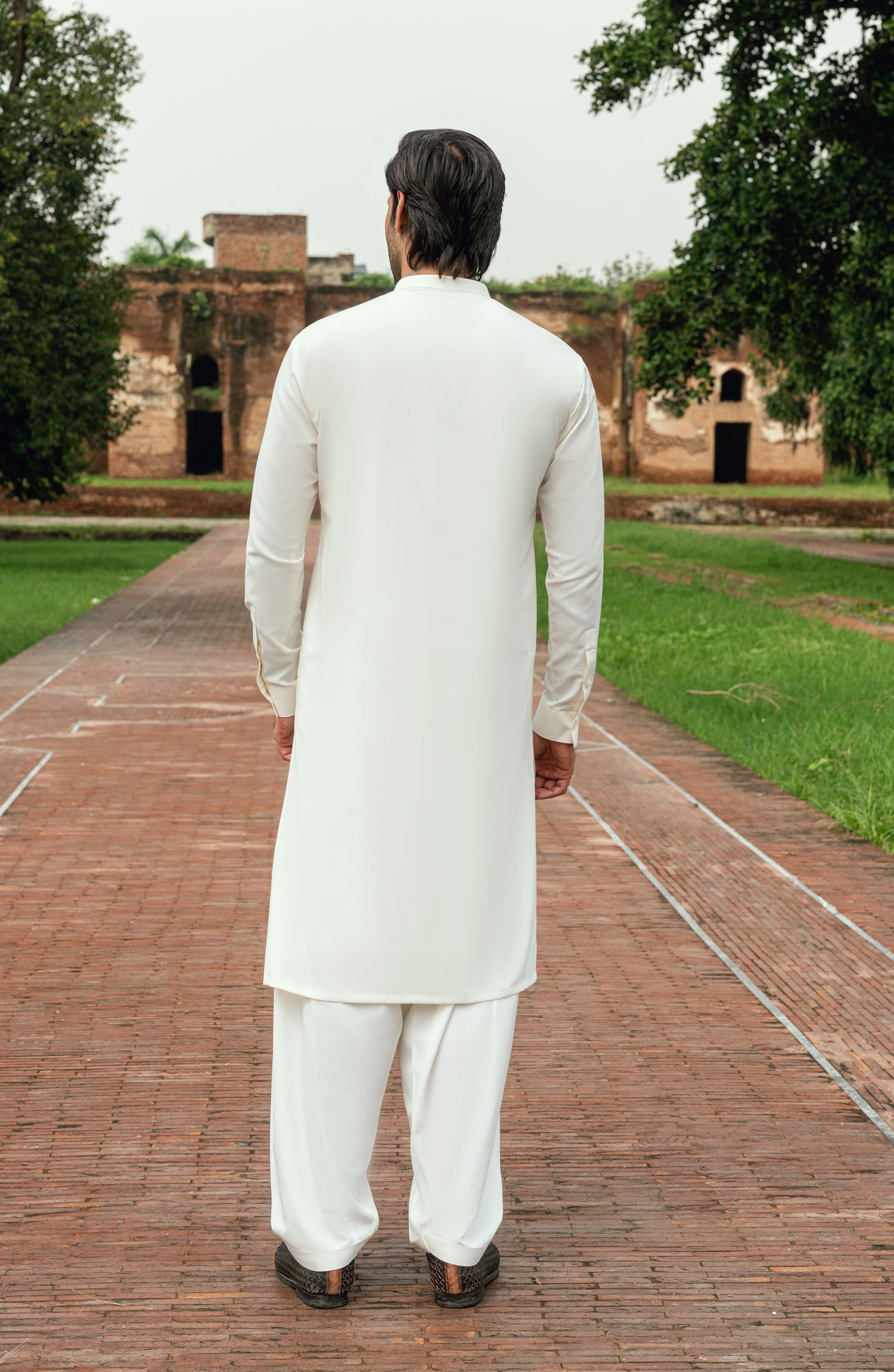 CREAM BLENDED EMBROIDERED KAMEEZ SHALWAR