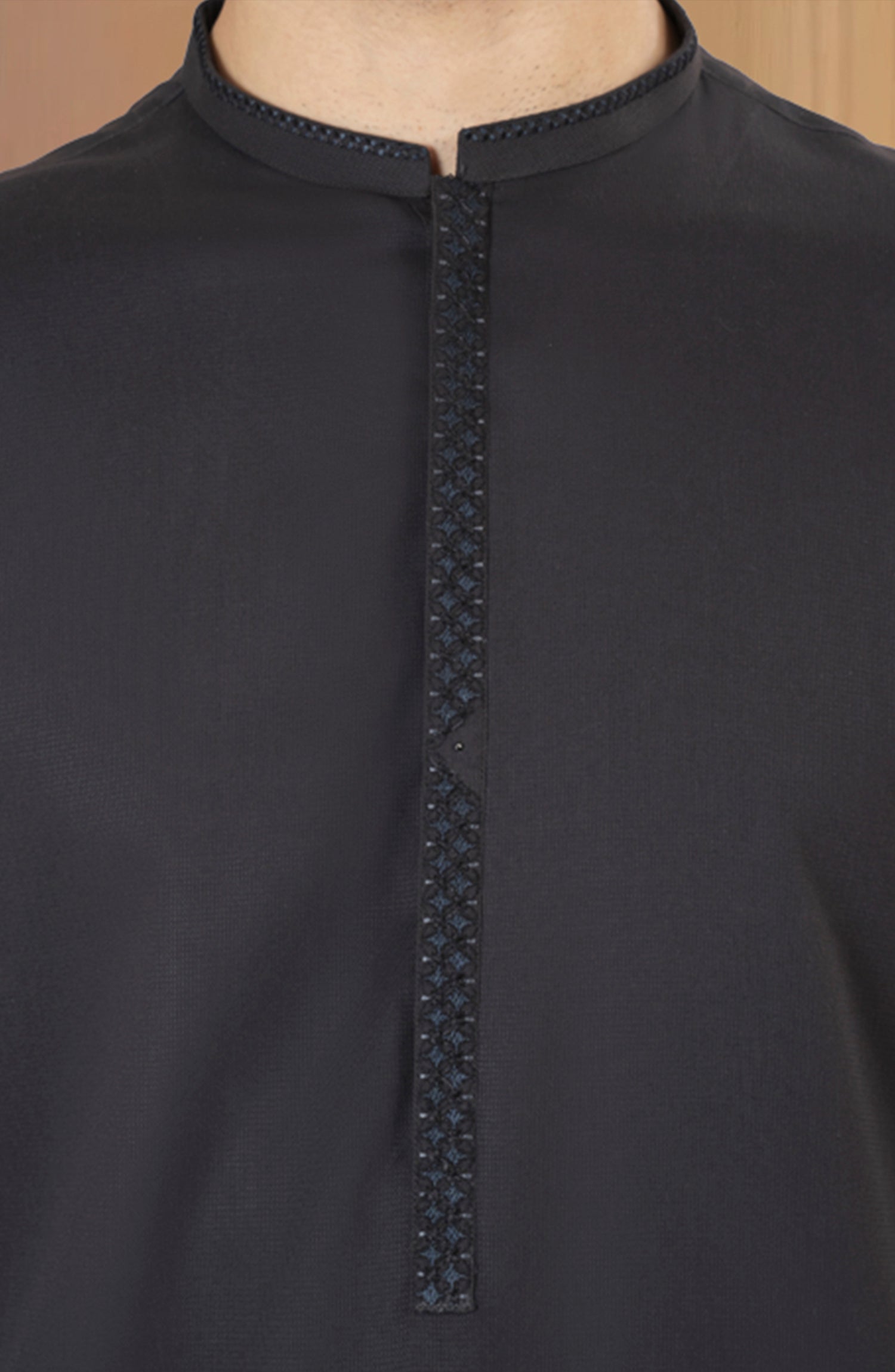 DARK-GREY EMBROIDERED BLENDED KAMEEZ SHALWAR