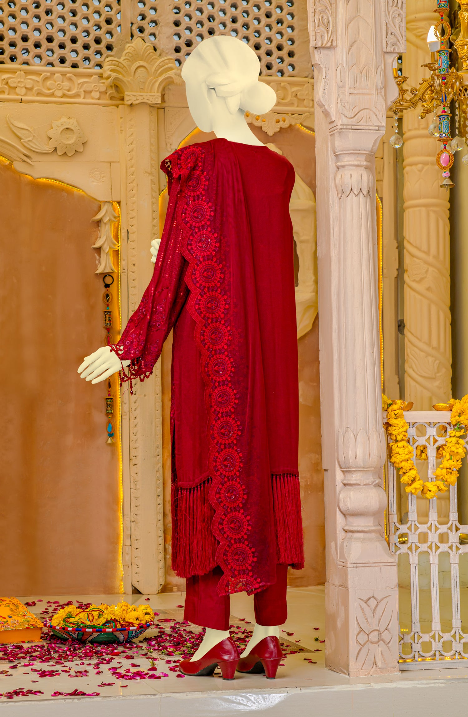 Embellishment: Button on neckline ,Crystal detail on sleeves & tassel on daman