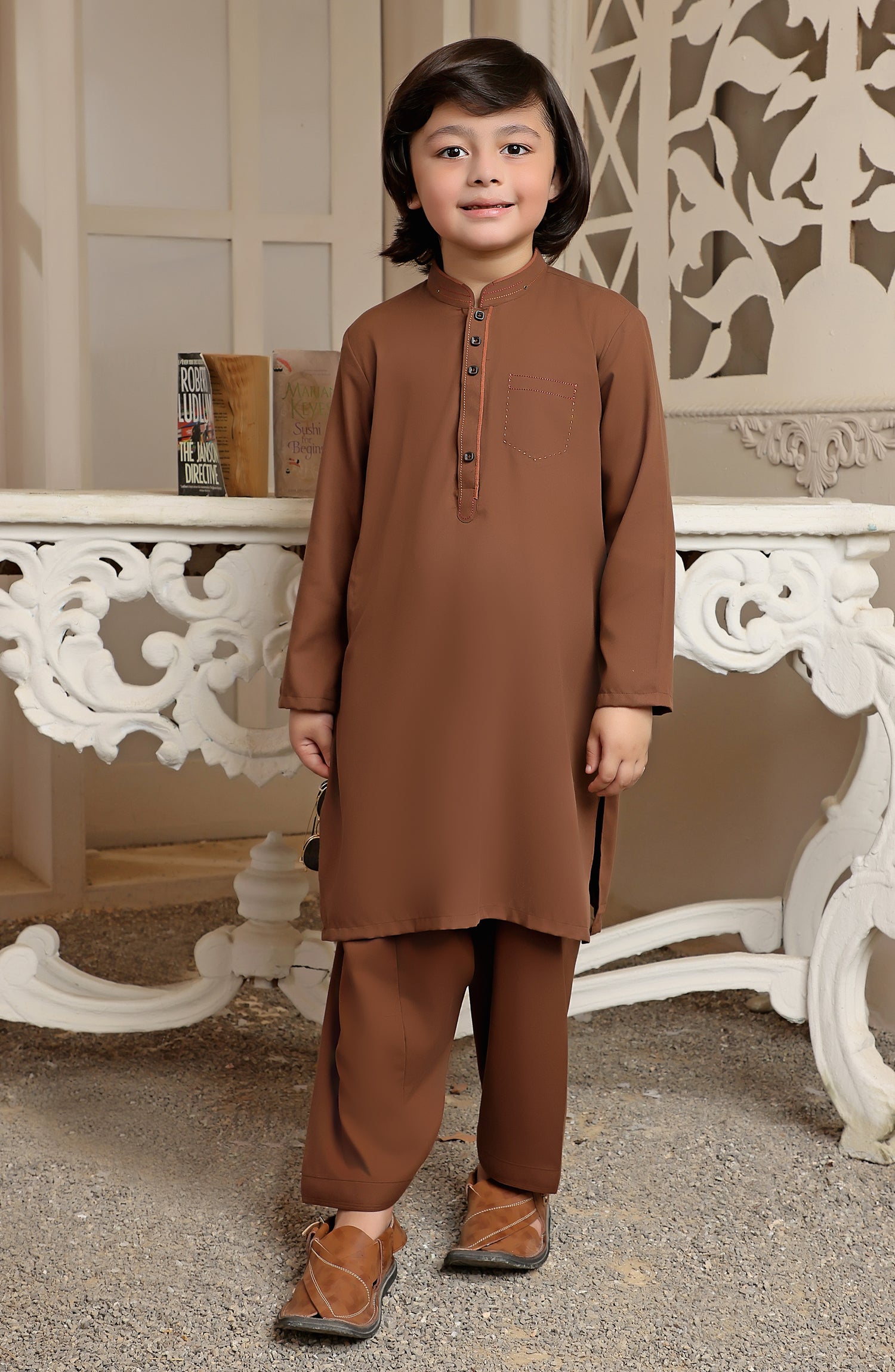 EID FESTIVE'22 BOYS SEMI FORMAL KAMEEZ SHALWAR BROWN