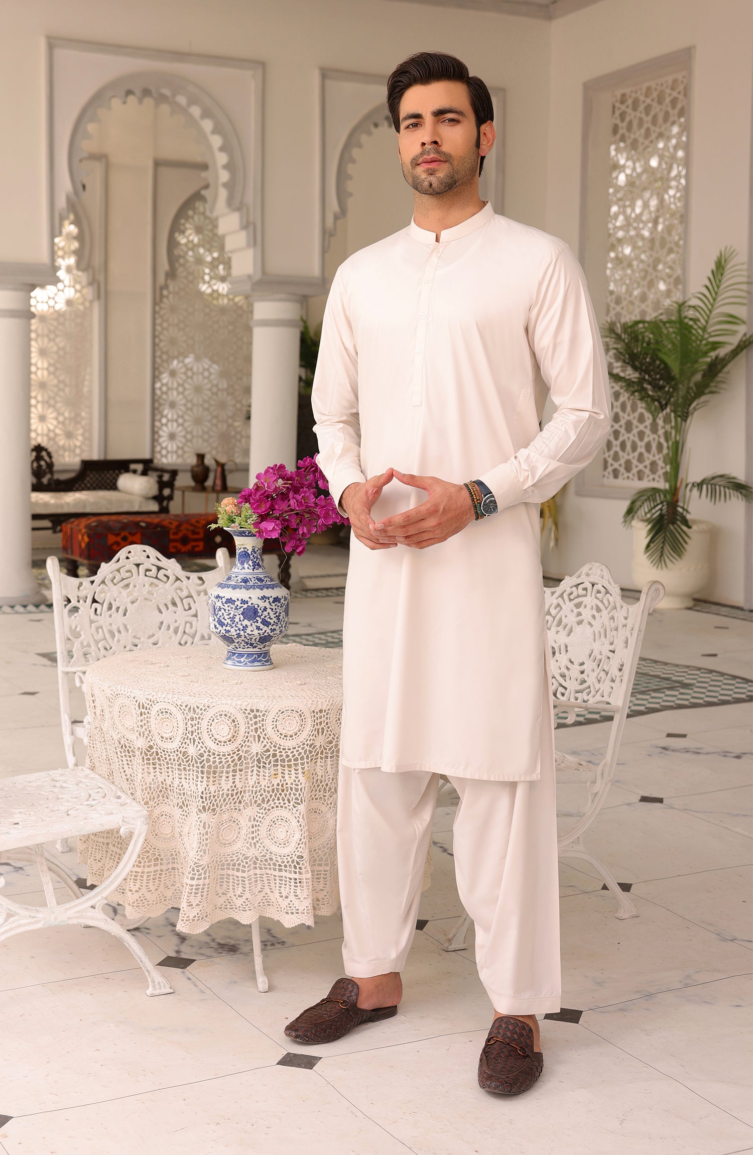 EID FESTIVE'22 MEN KAMEEZ SHALWAR PLAIN LIGHT BEIGE