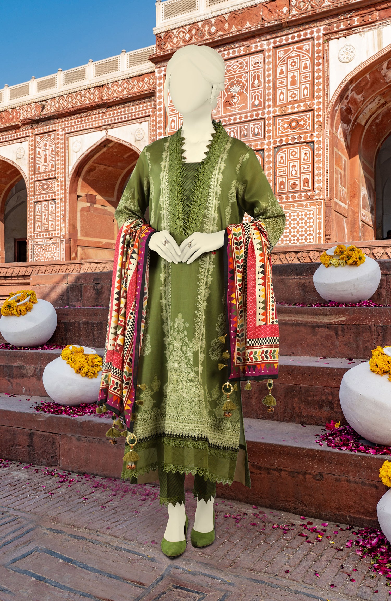 Basic Printed Lawn Shirt with Lawn Printed Dupatta and Printed Cambric pants