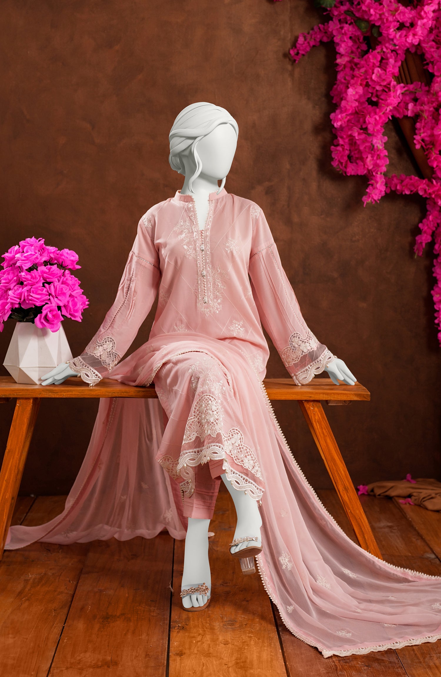 • Premium Dyed Embroidered Chiffon Dupatta (2.5 Meter)