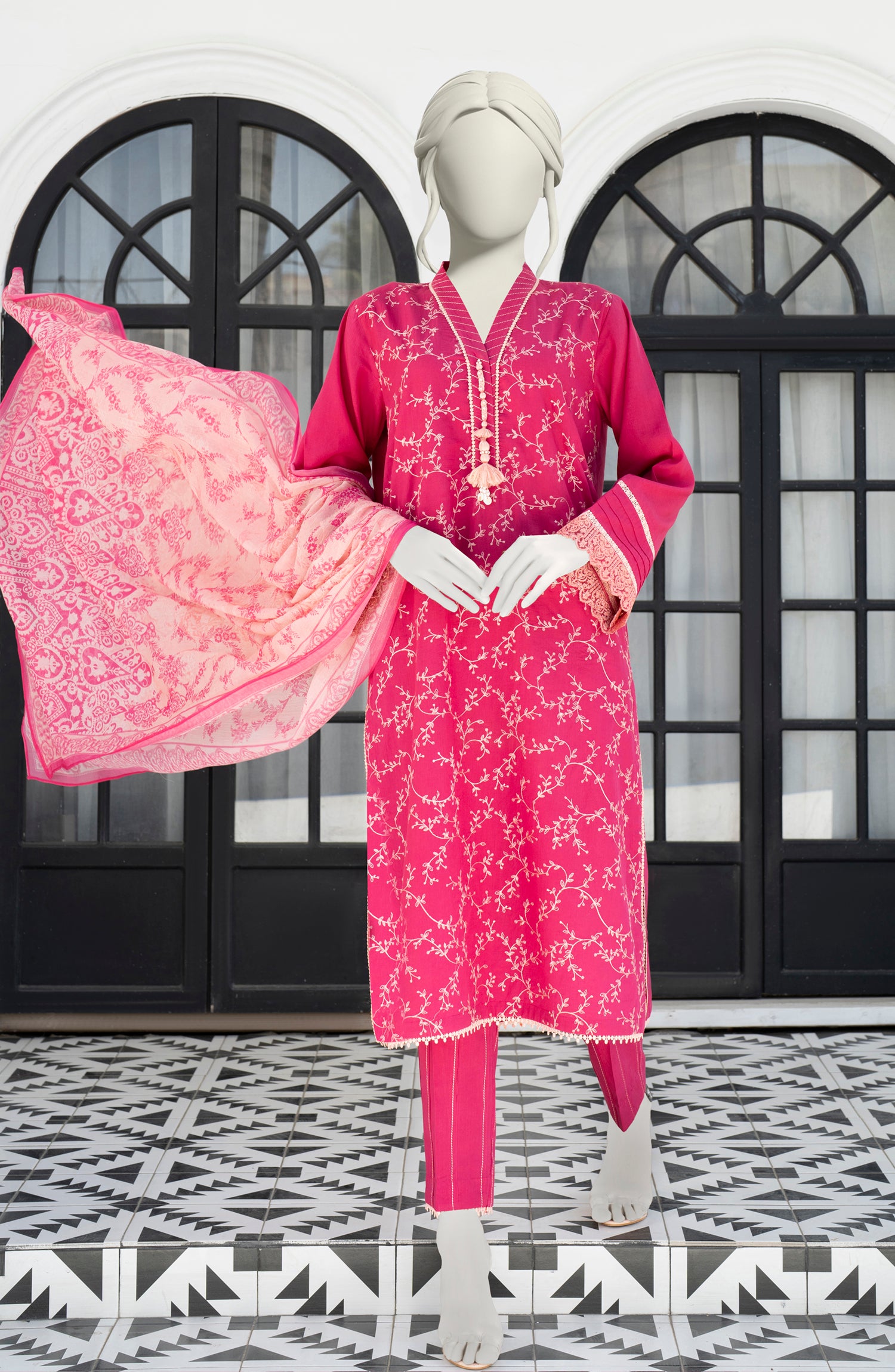 EMBROIDERED CAMBRIC 3PCS UNSTITCHED