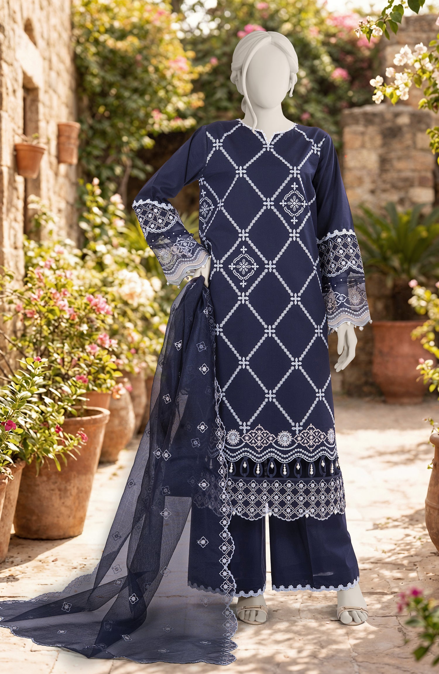 EMBROIDERED CAMBRIC 3PCS UNSTITCHED