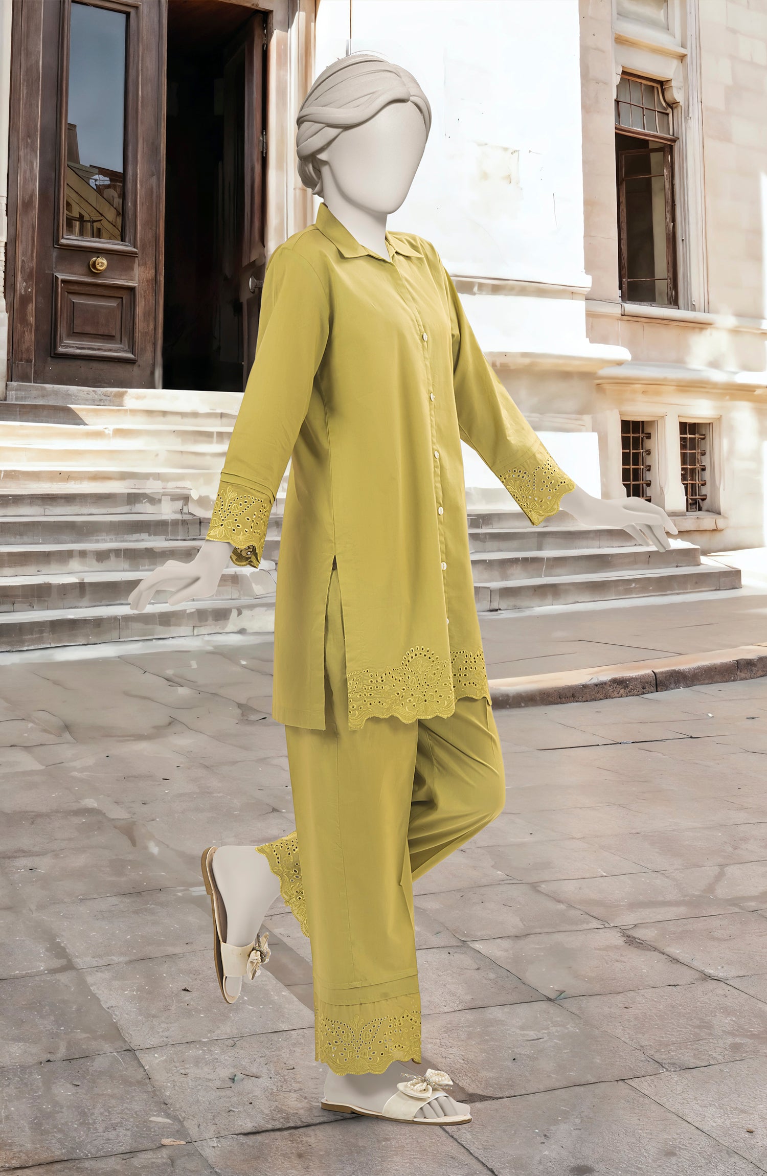 EMBROIDERED CAMBRIC STITCHED 2 PIECE