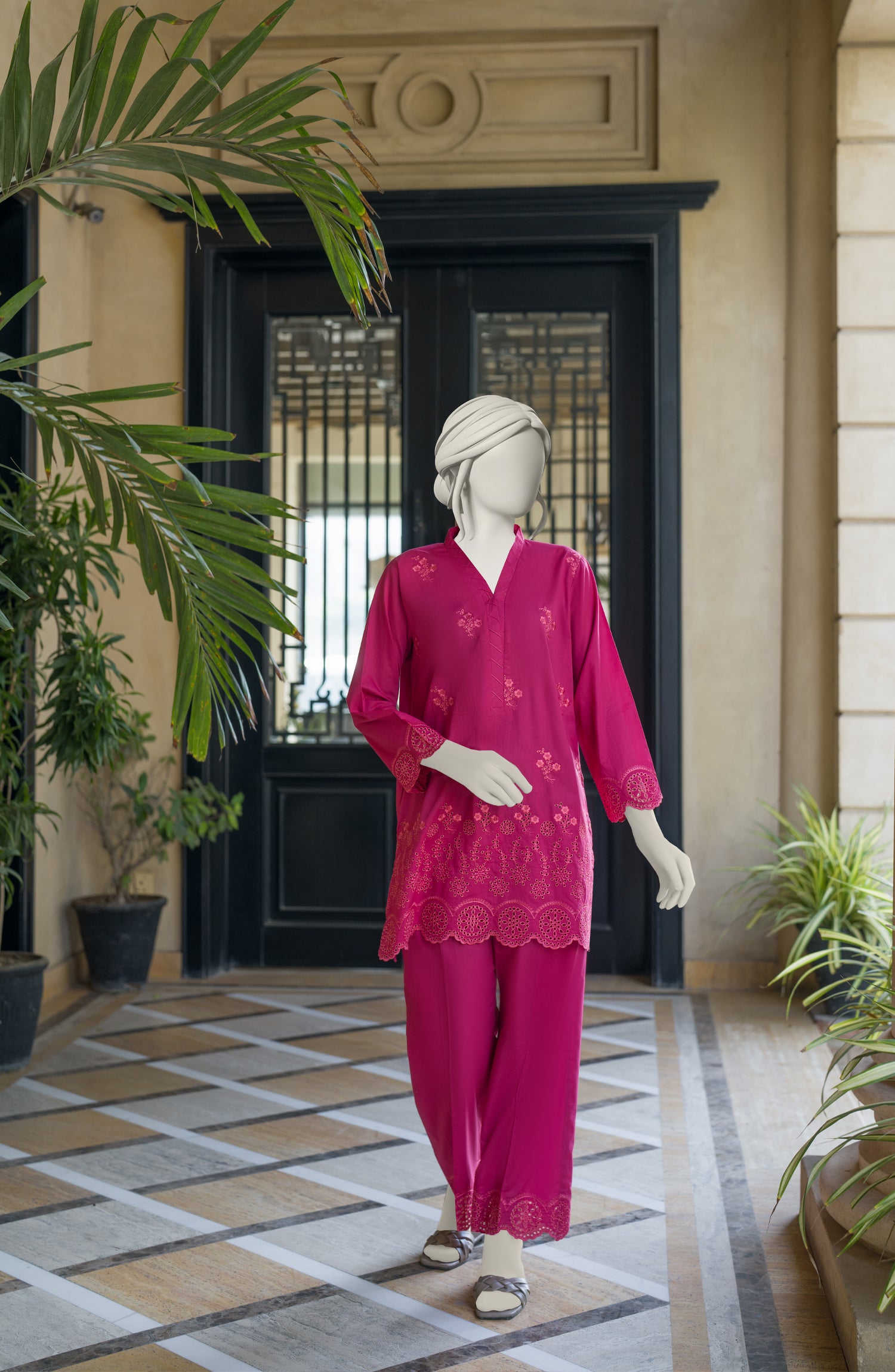 EMBROIDERED CAMBRIC STITCHED 2 PIECE