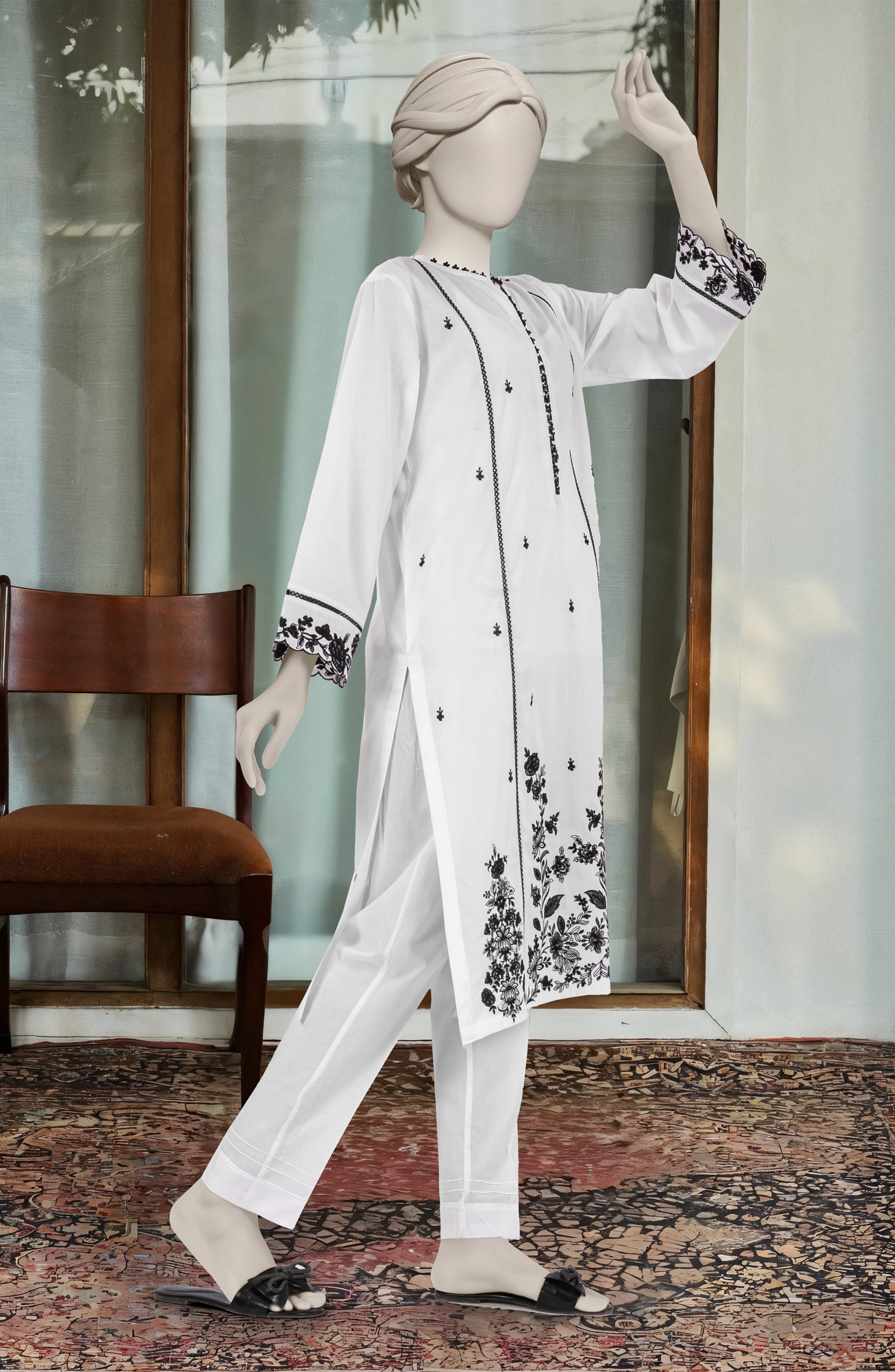 EMBROIDERED CAMBRIC STITCHED 2 PIECE
