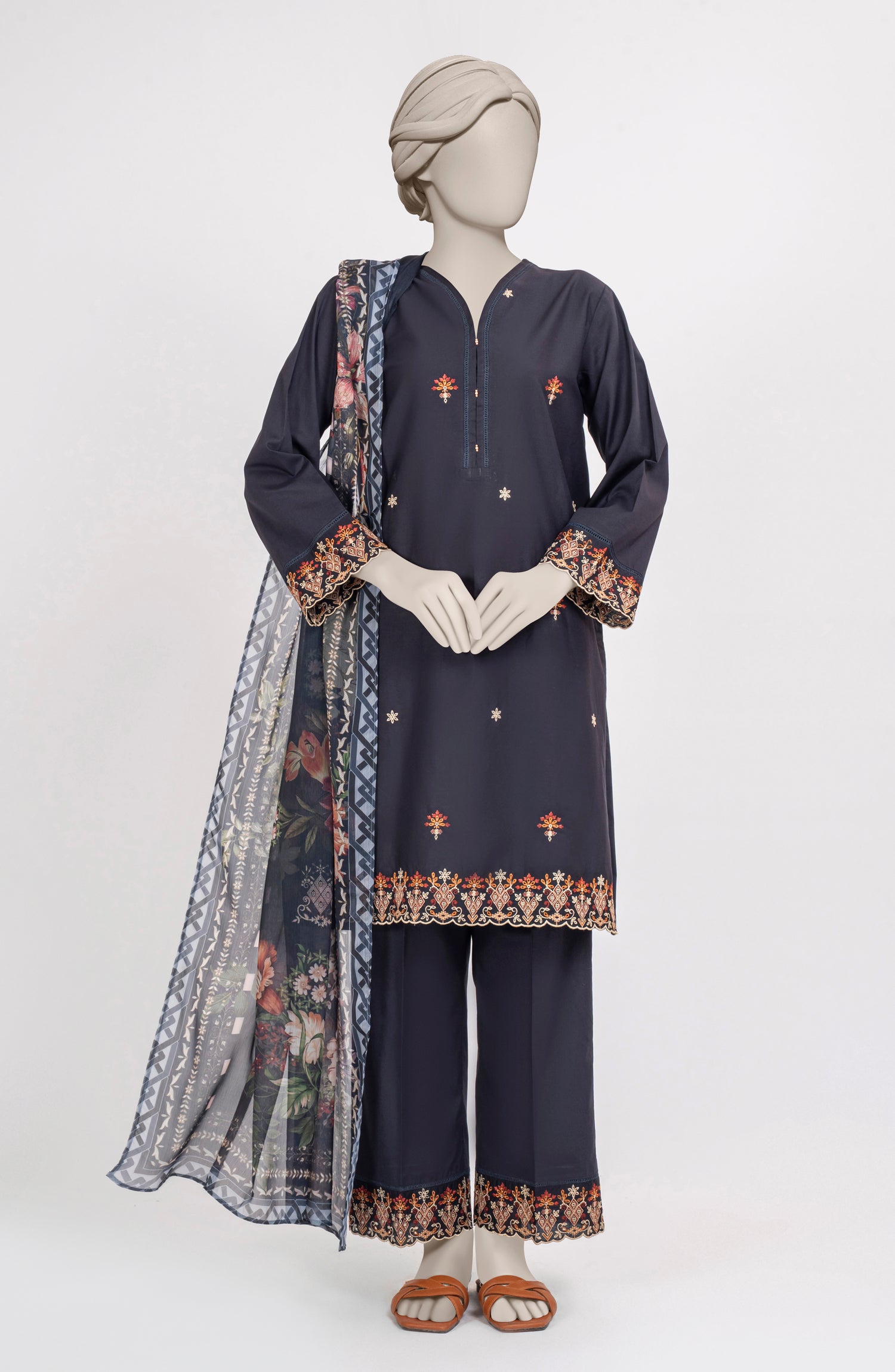 EMBROIDERED CAMBRIC STITCHED 3 PIECE