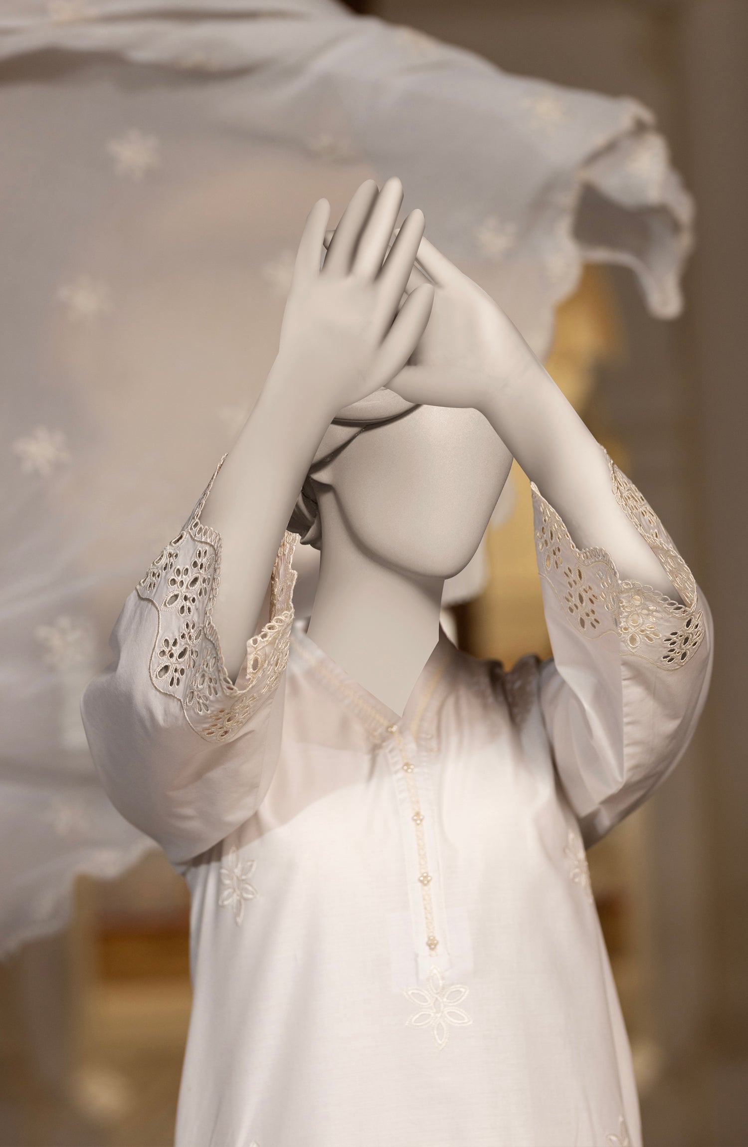 EMBROIDERED CAMBRIC STITCHED 3 PIECE