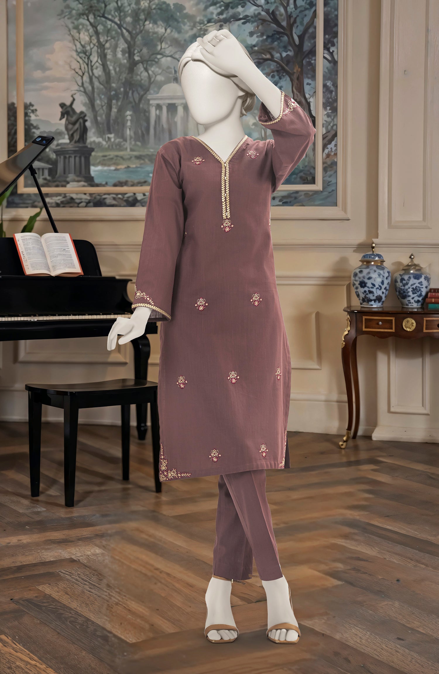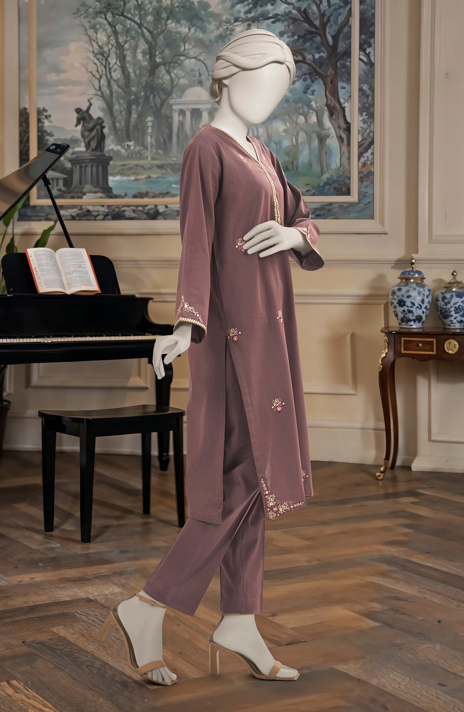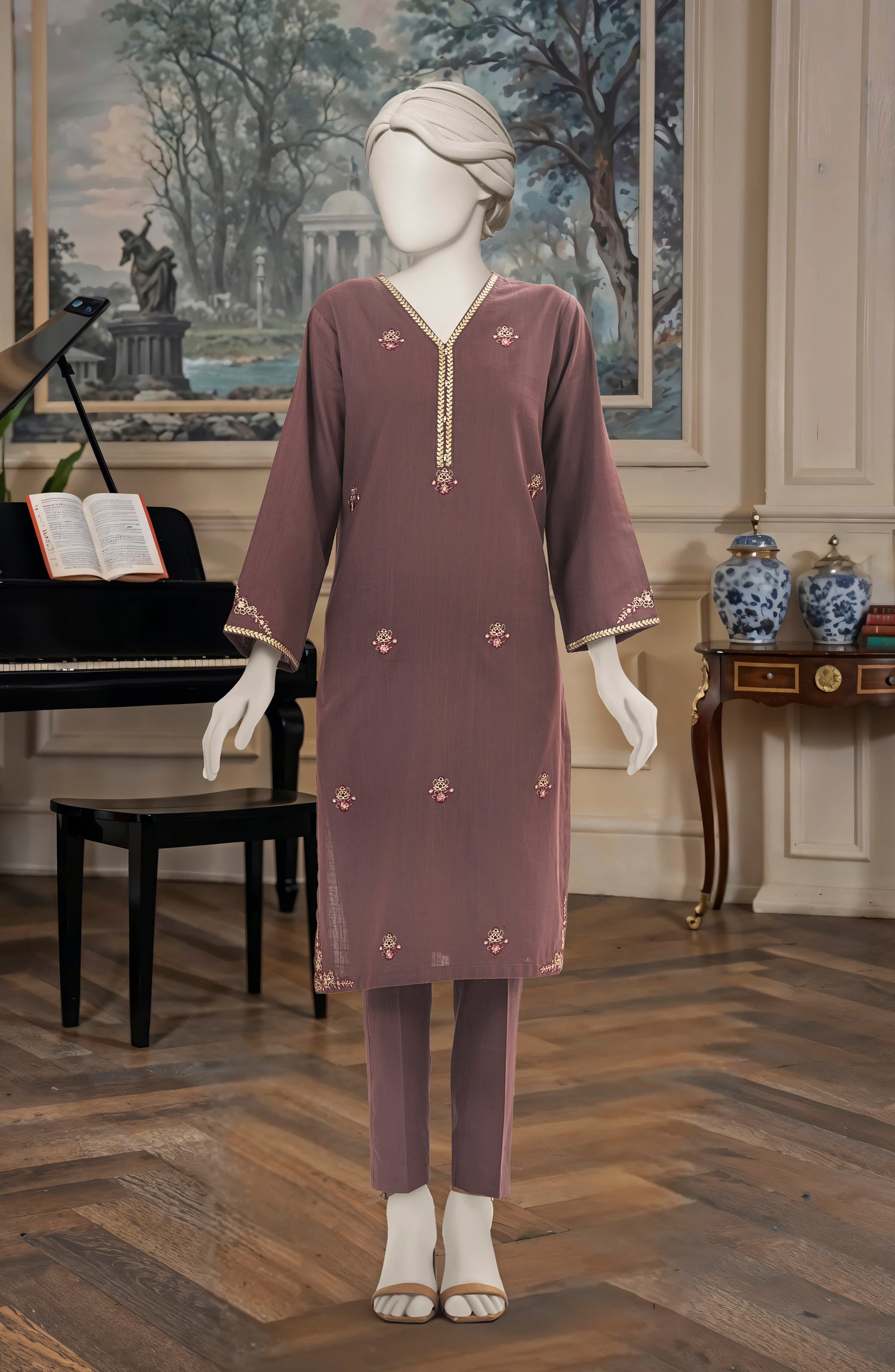 EMBROIDERED CROSS HATCH STITCHED 2 PIECE