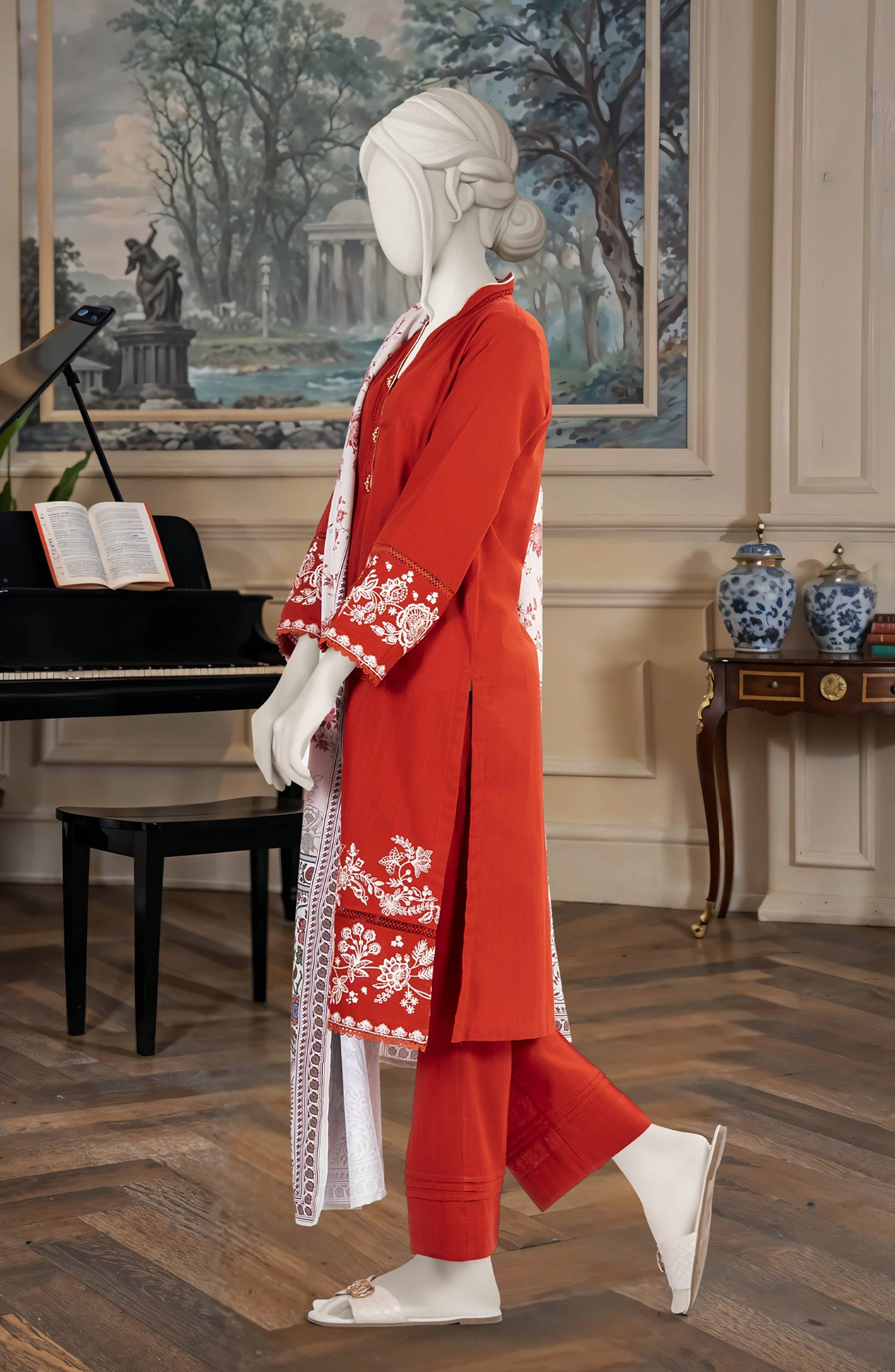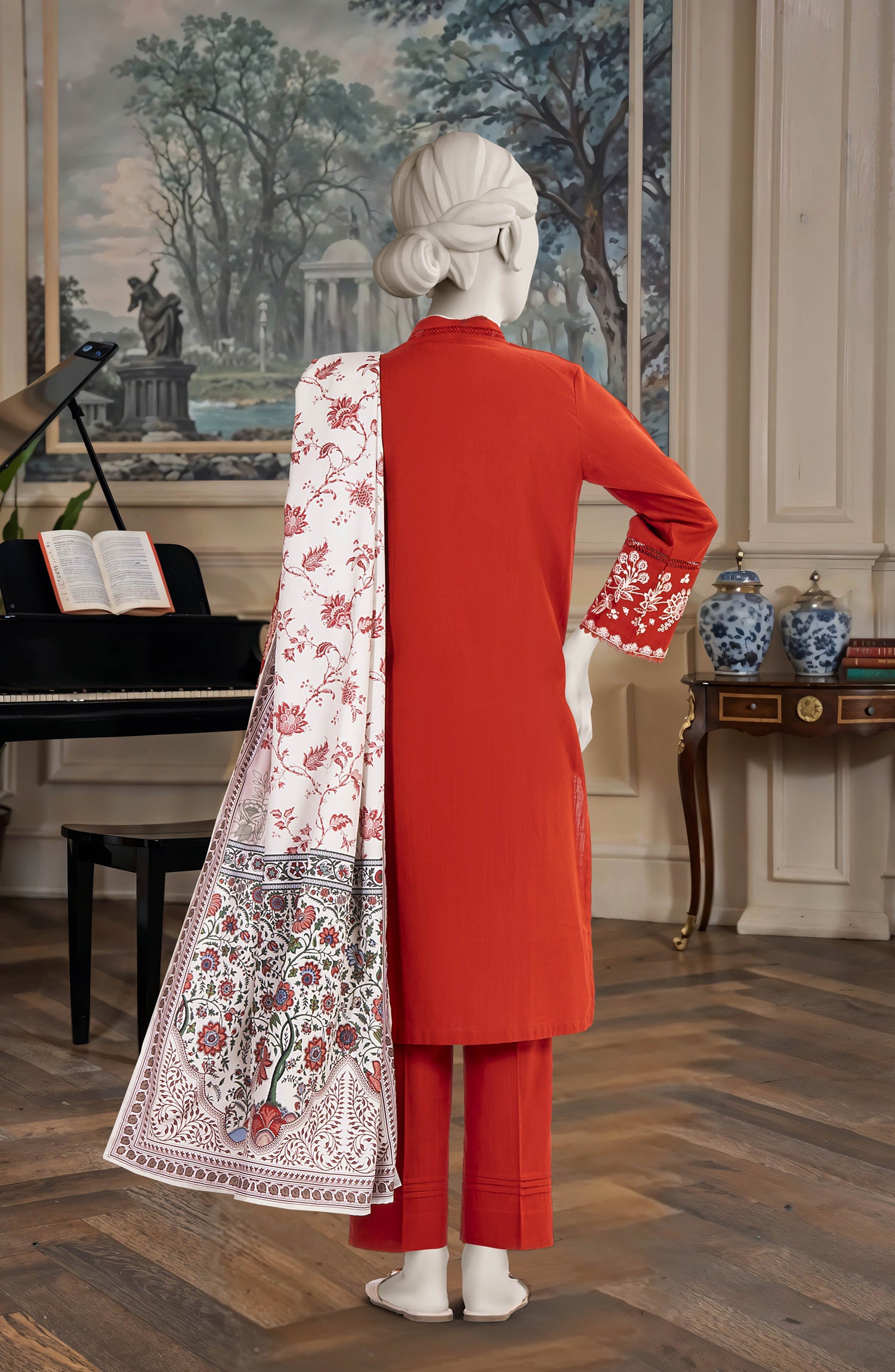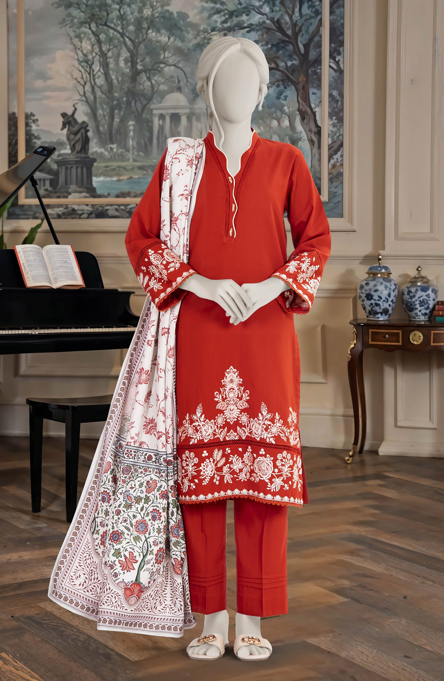 EMBROIDERED CROSS HATCH STITCHED 3 PIECE