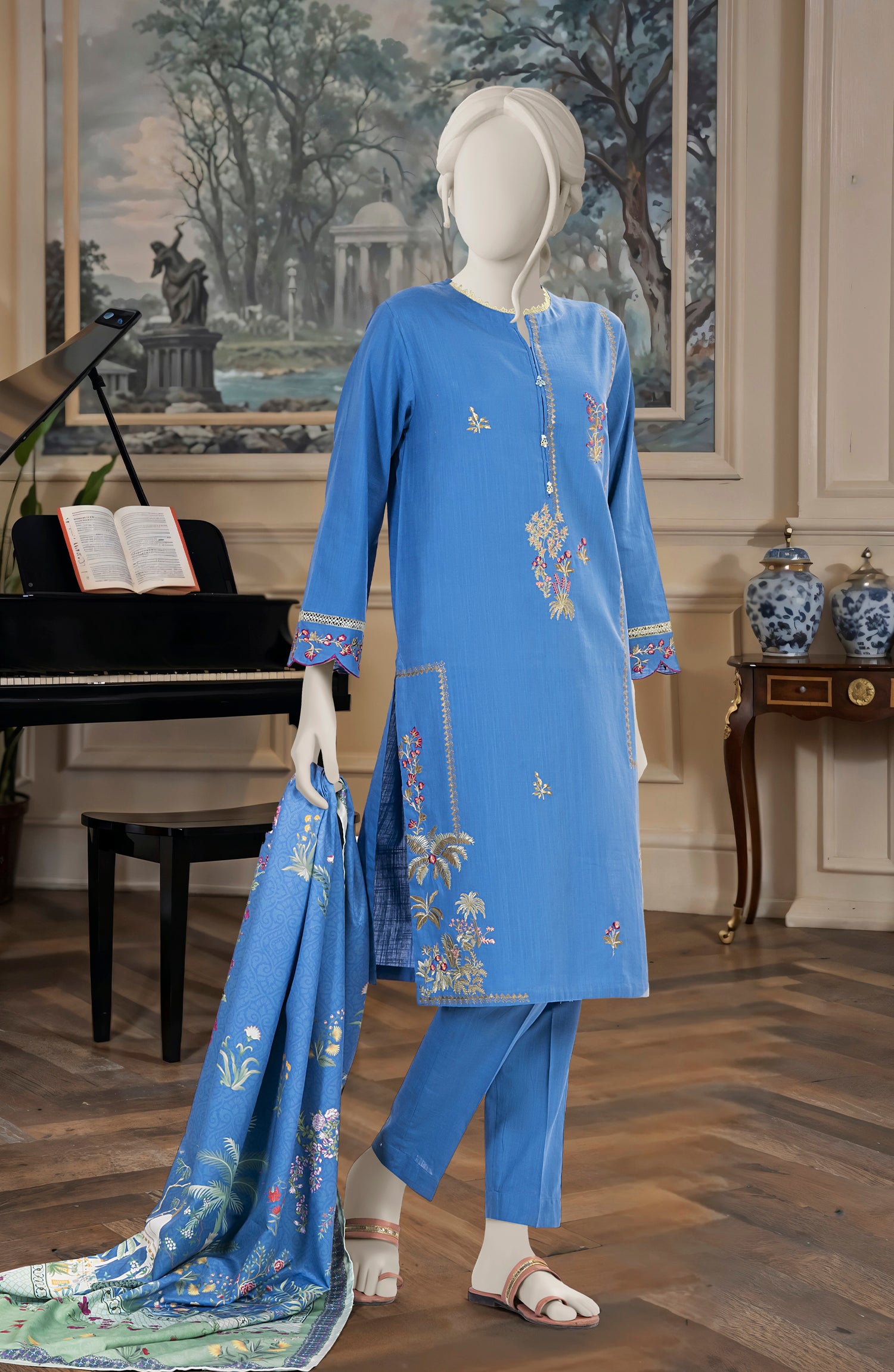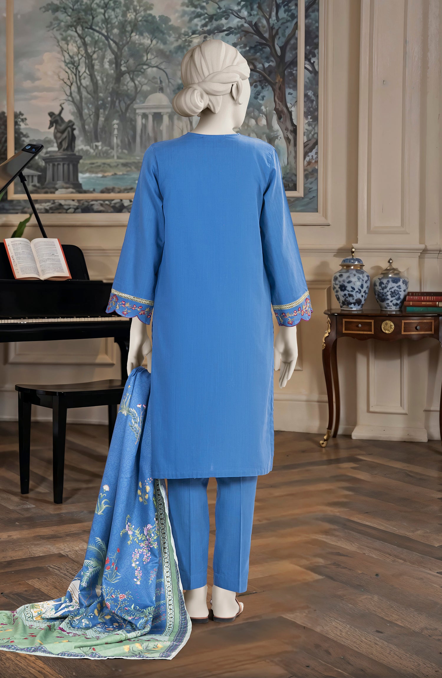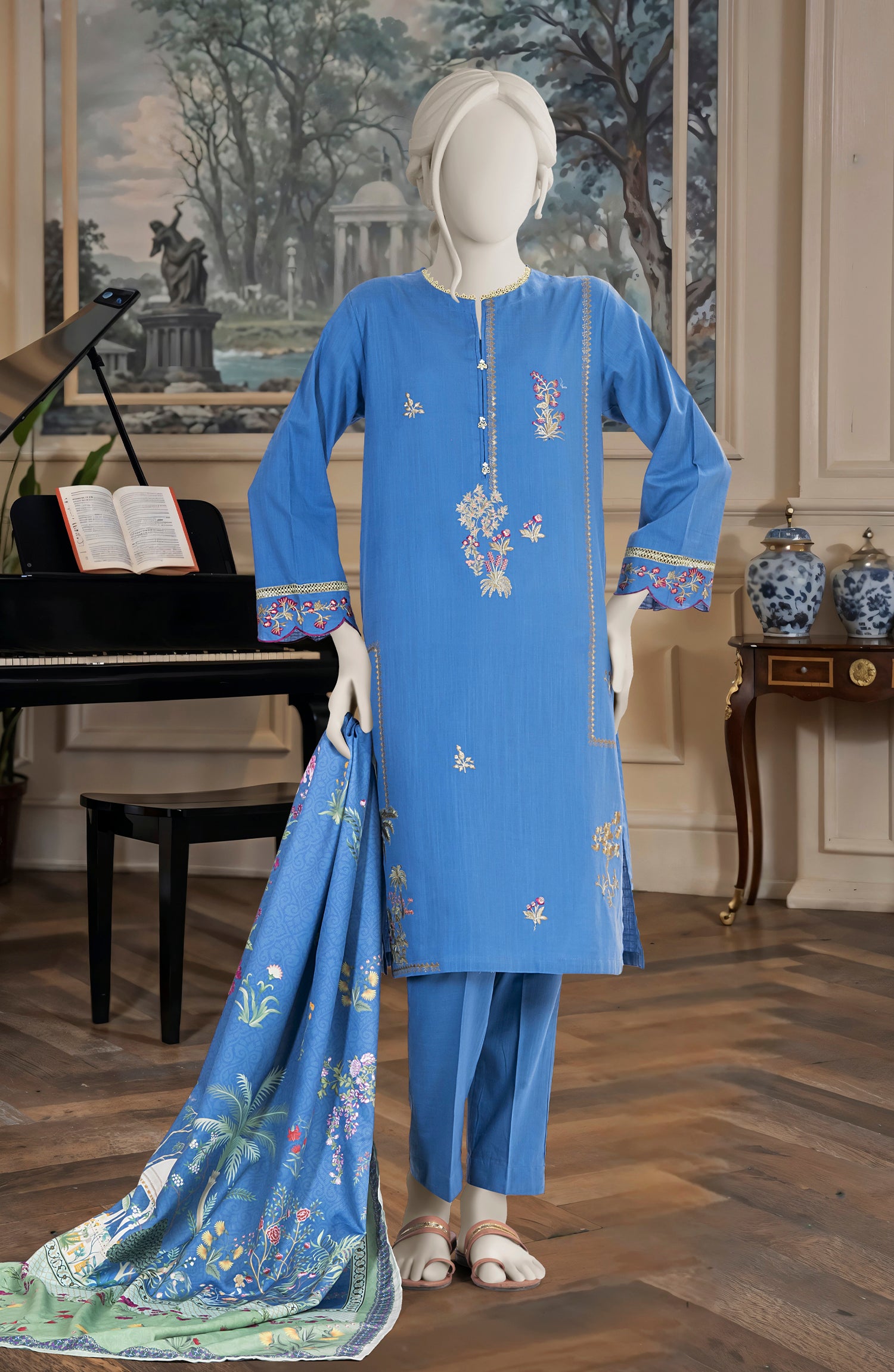 EMBROIDERED CROSS HATCH STITCHED 3 PIECE