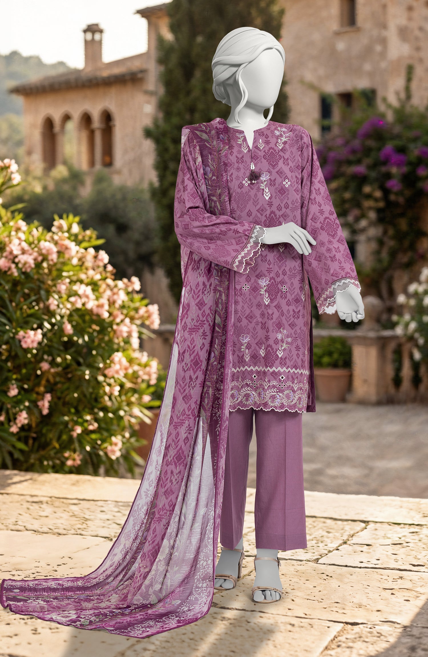 EMBROIDERED PRINTED LAWN 3PCS UNSTITCHED