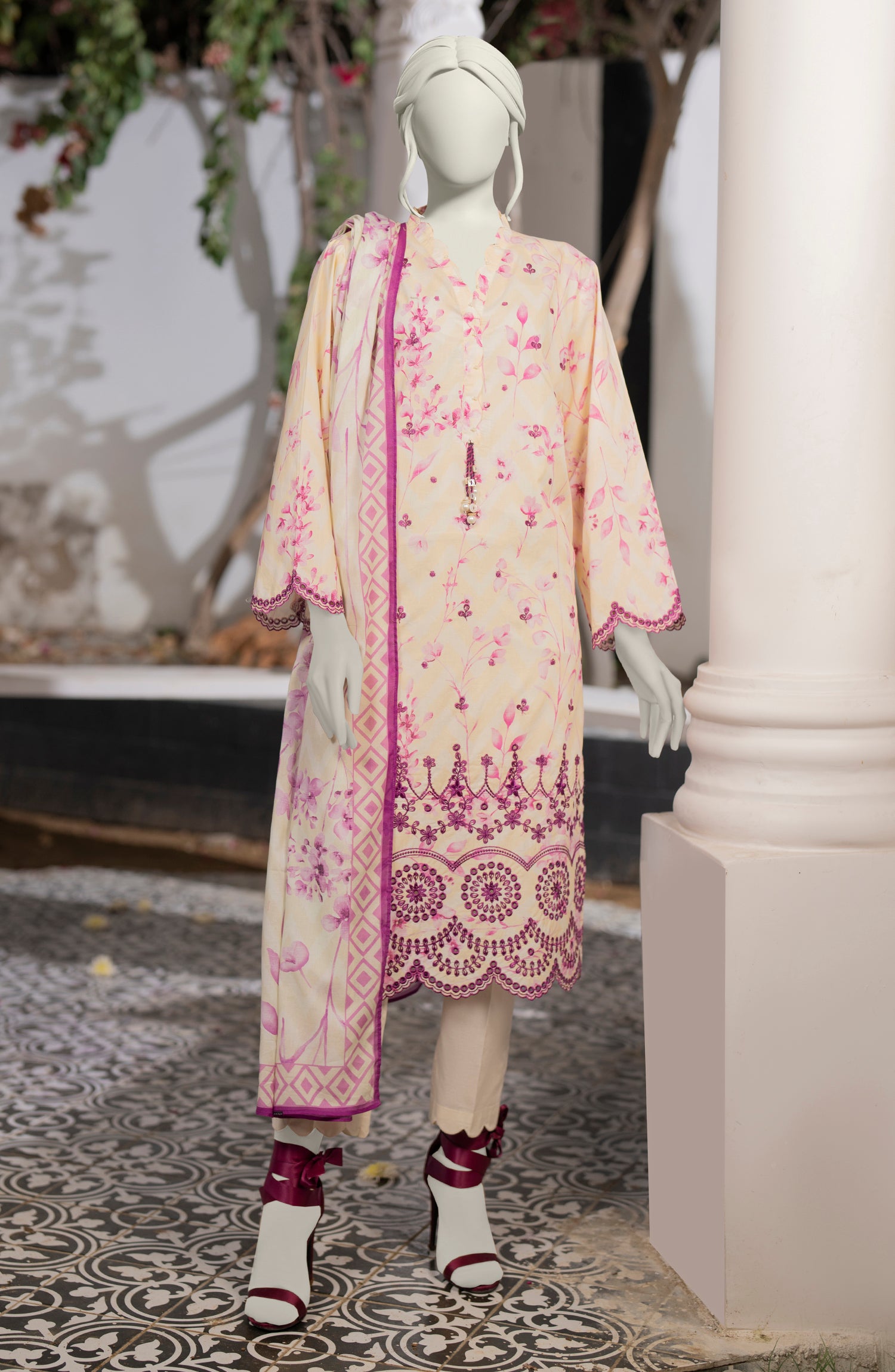 EMBROIDERED PRINTED LAWN 3PCS UNSTITCHED