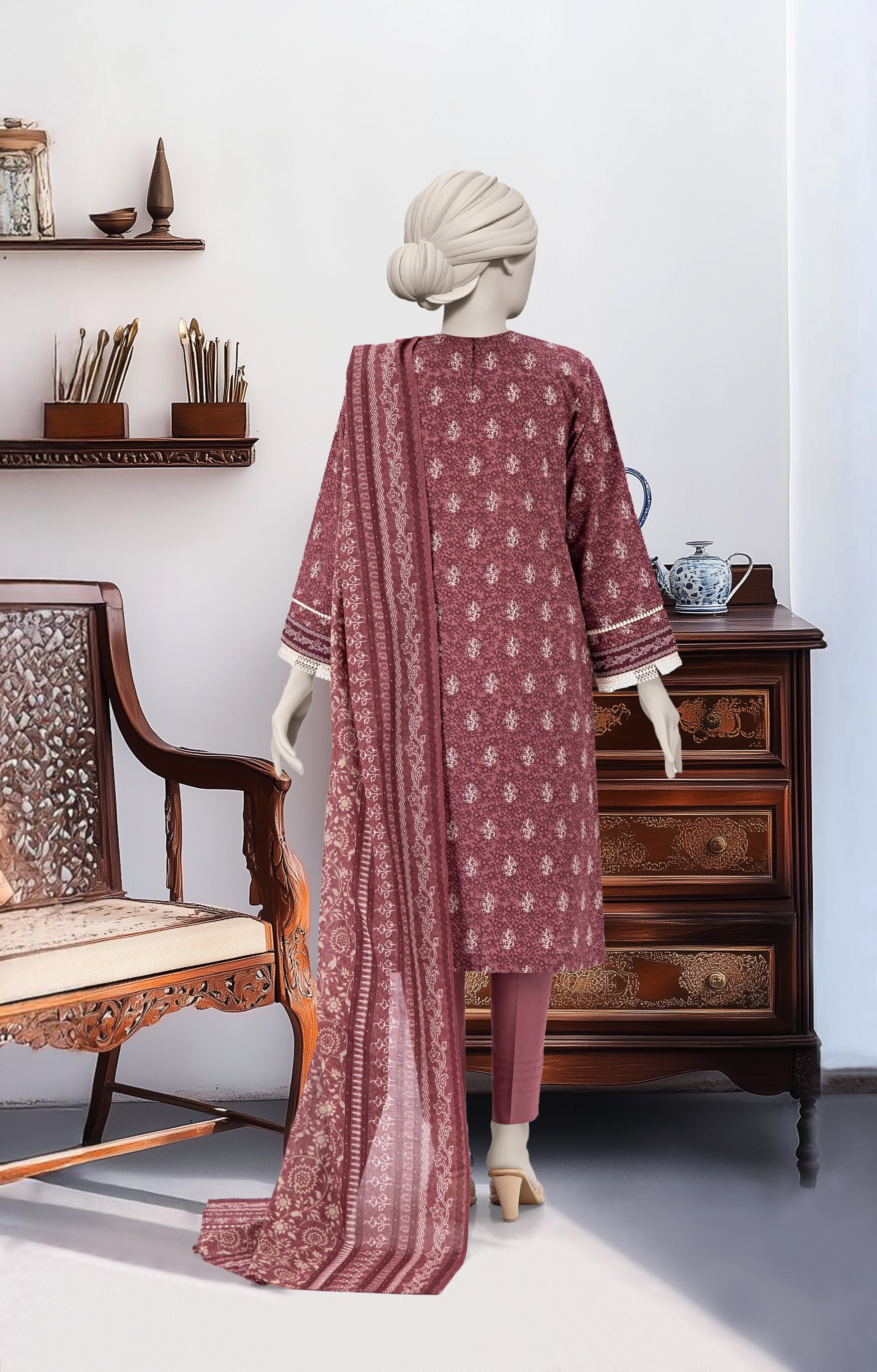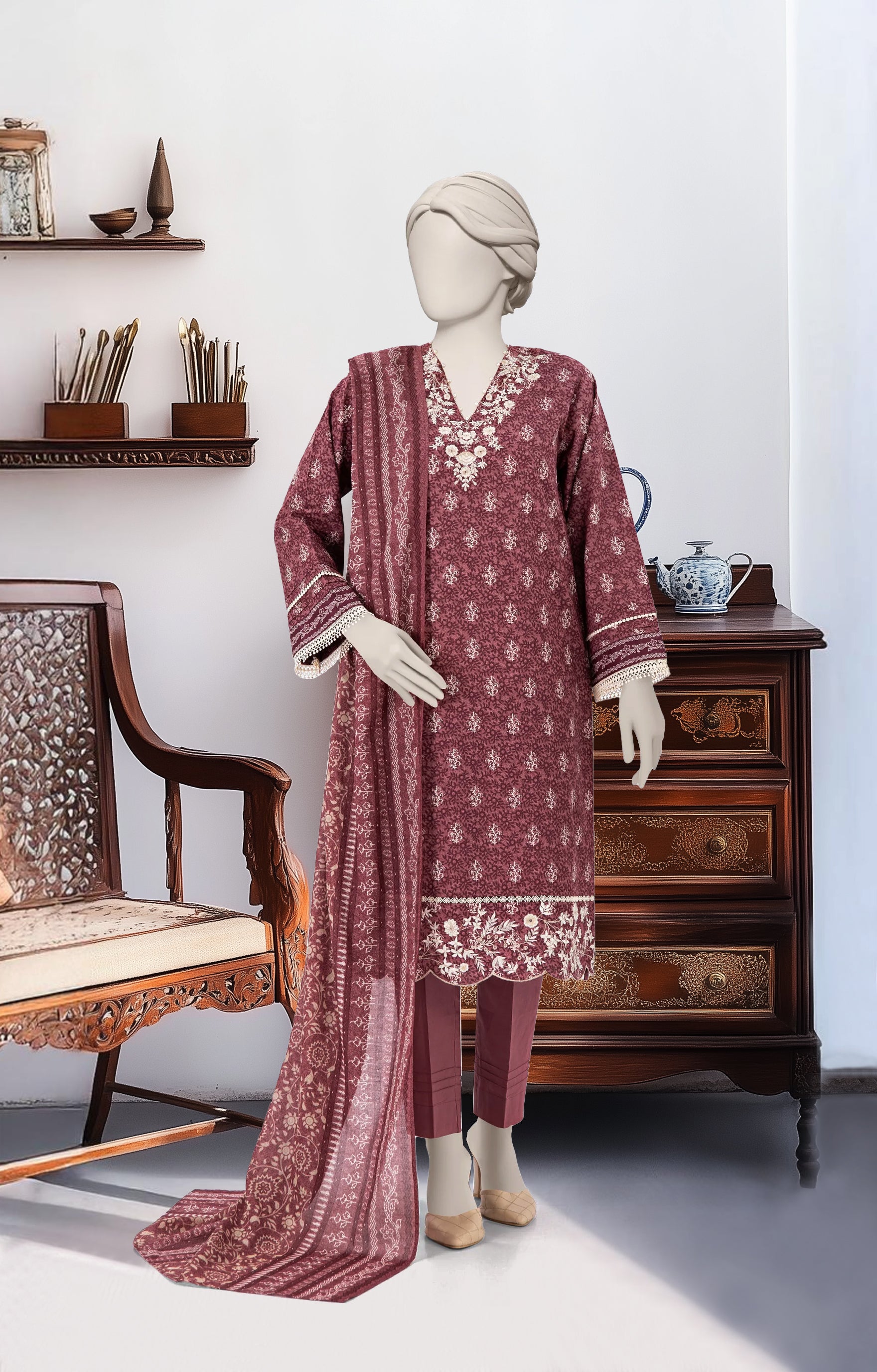EMBROIDERED PRINTED LAWN STITCHED 3 PIECE