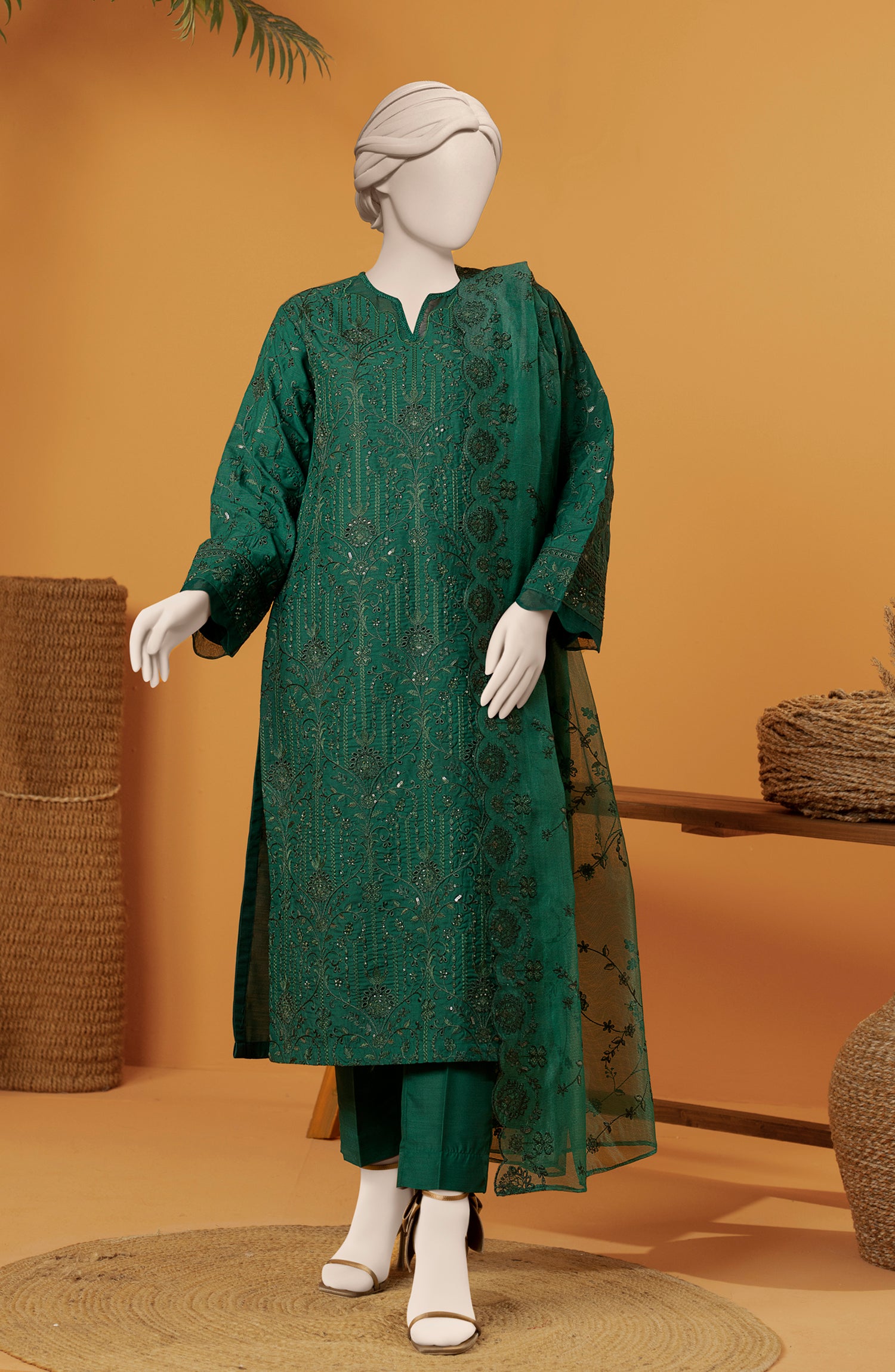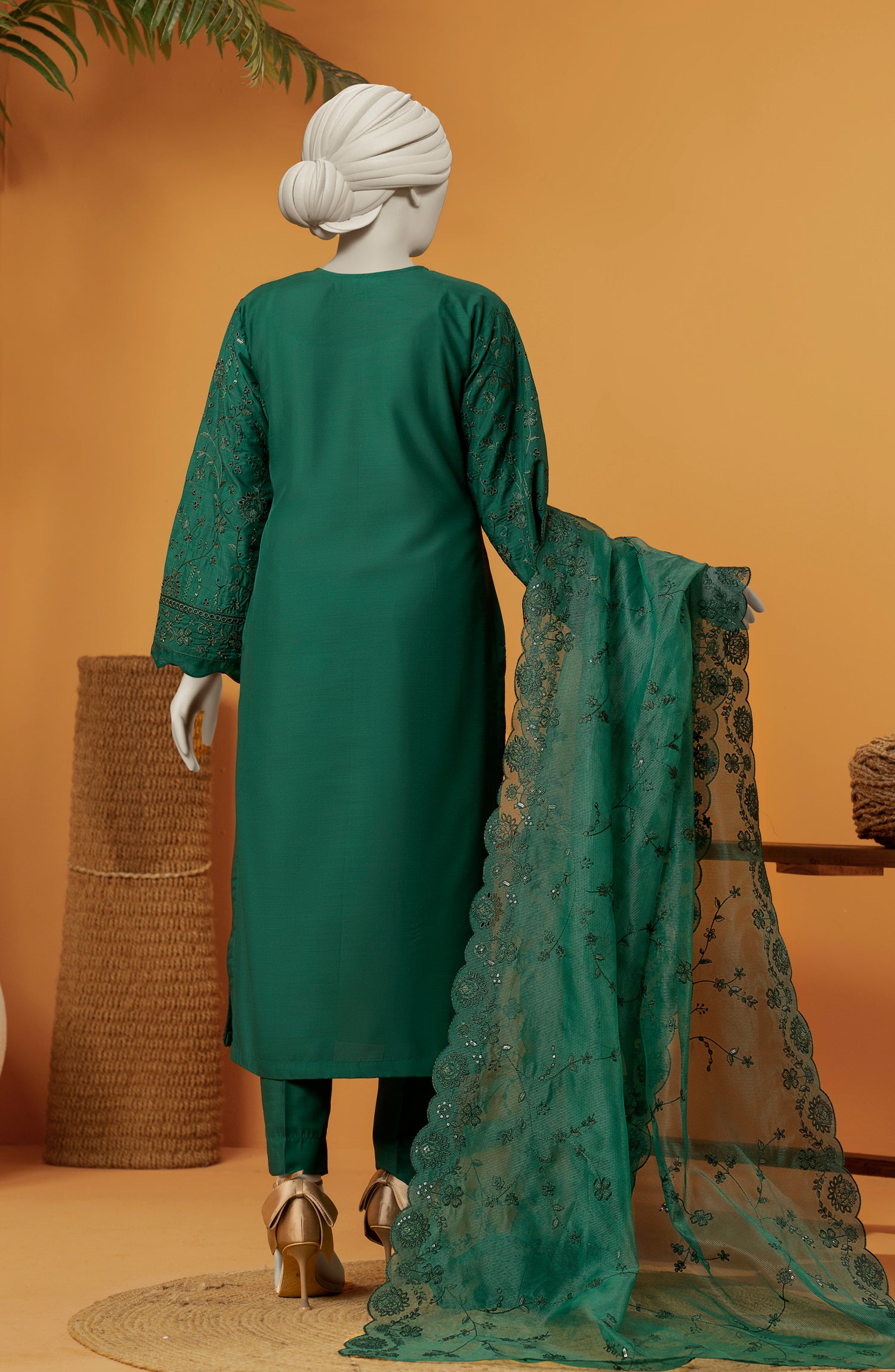 EMBROIDERED RAW SILK 3 PCS UNSTITCHED