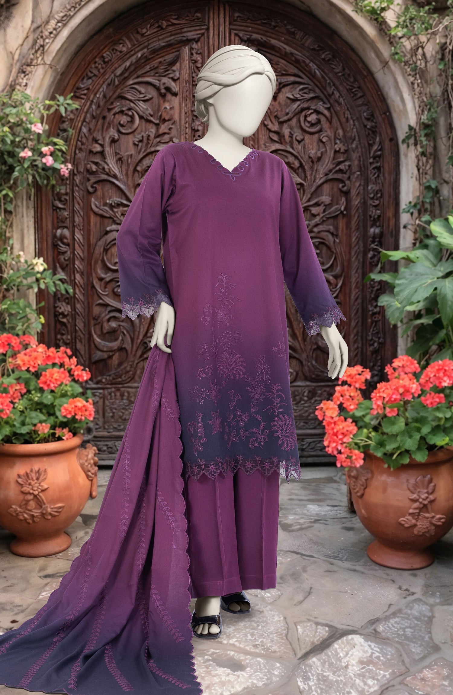 EMBROIDERED TWILL VISCOSE 3 PCS UNSTITCHED