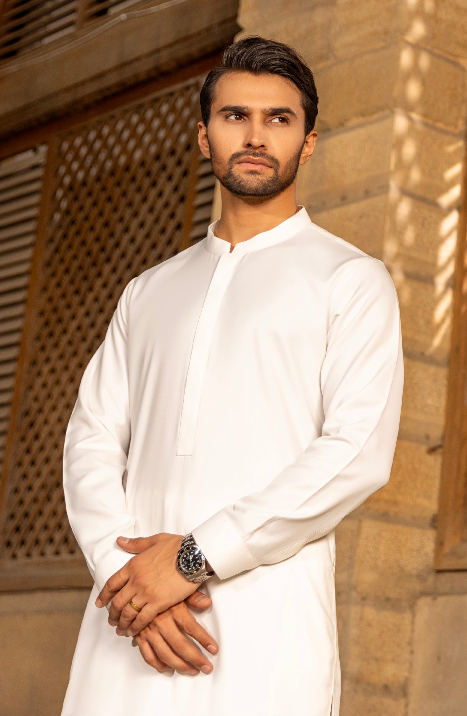 EXCLUSIVE WINTER'23 MEN KAMEEZ SHALWAR PLAIN OFF WHITE