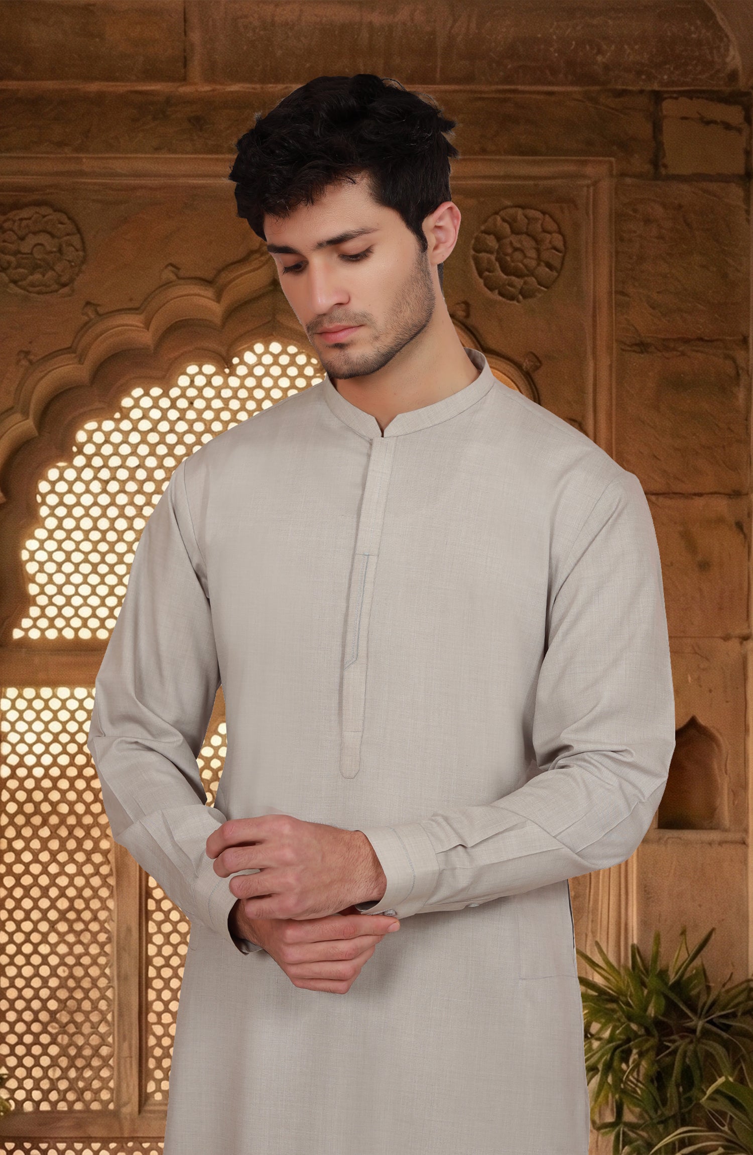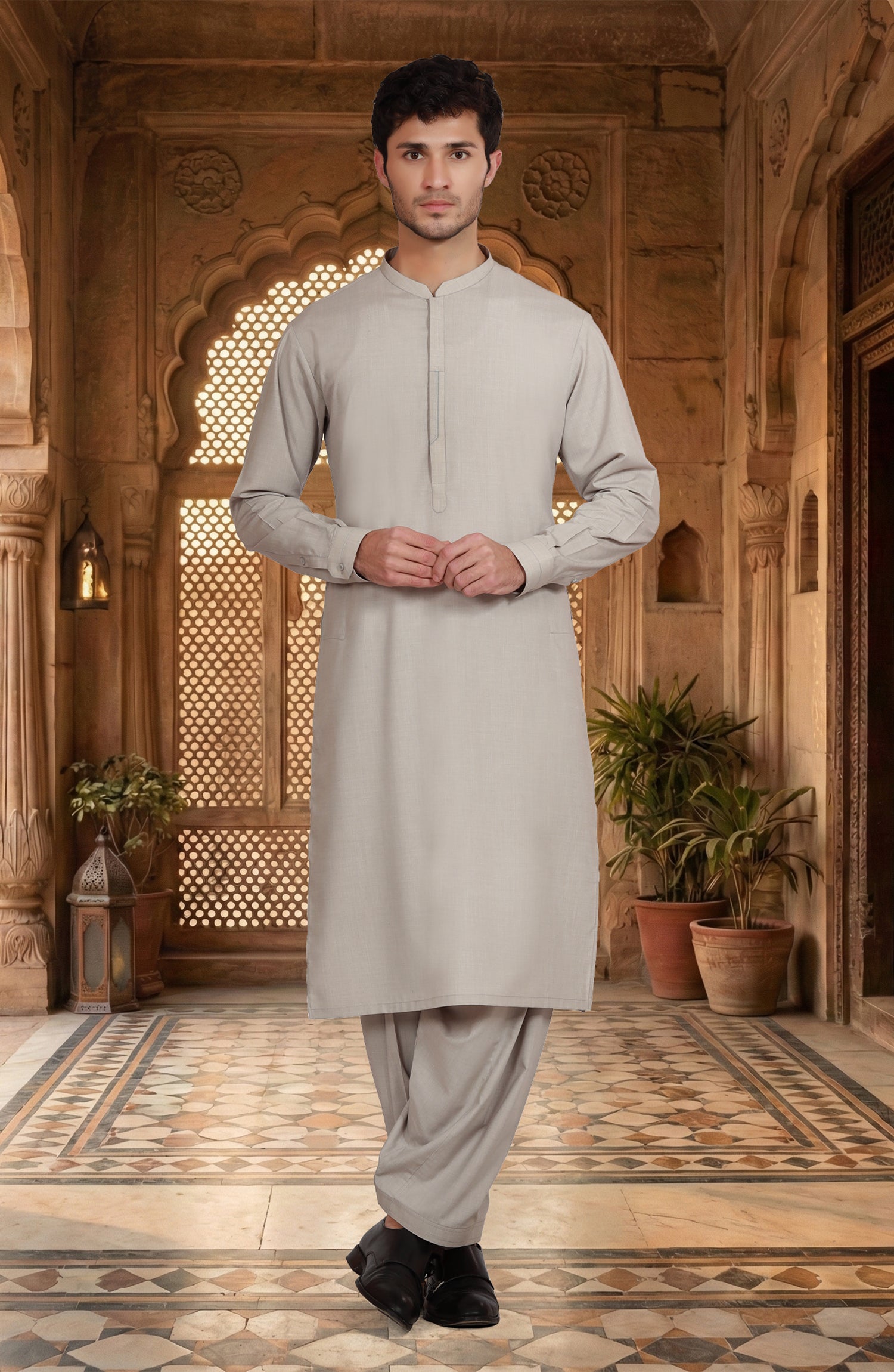 FEATHER-GREY BLENDED KAMEEZ SHALWAR