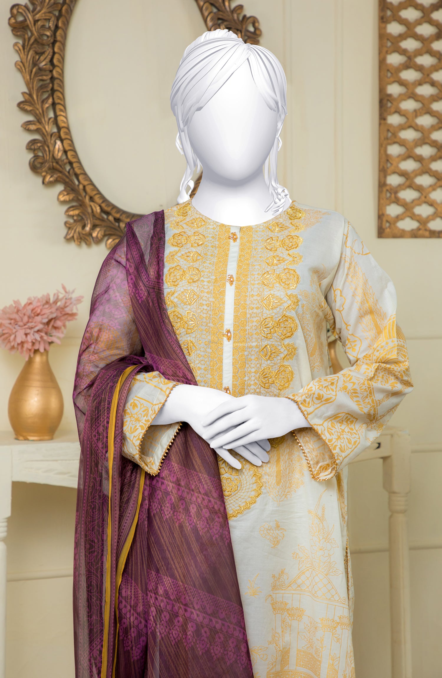 Shirt: Embroidered Gold Printed