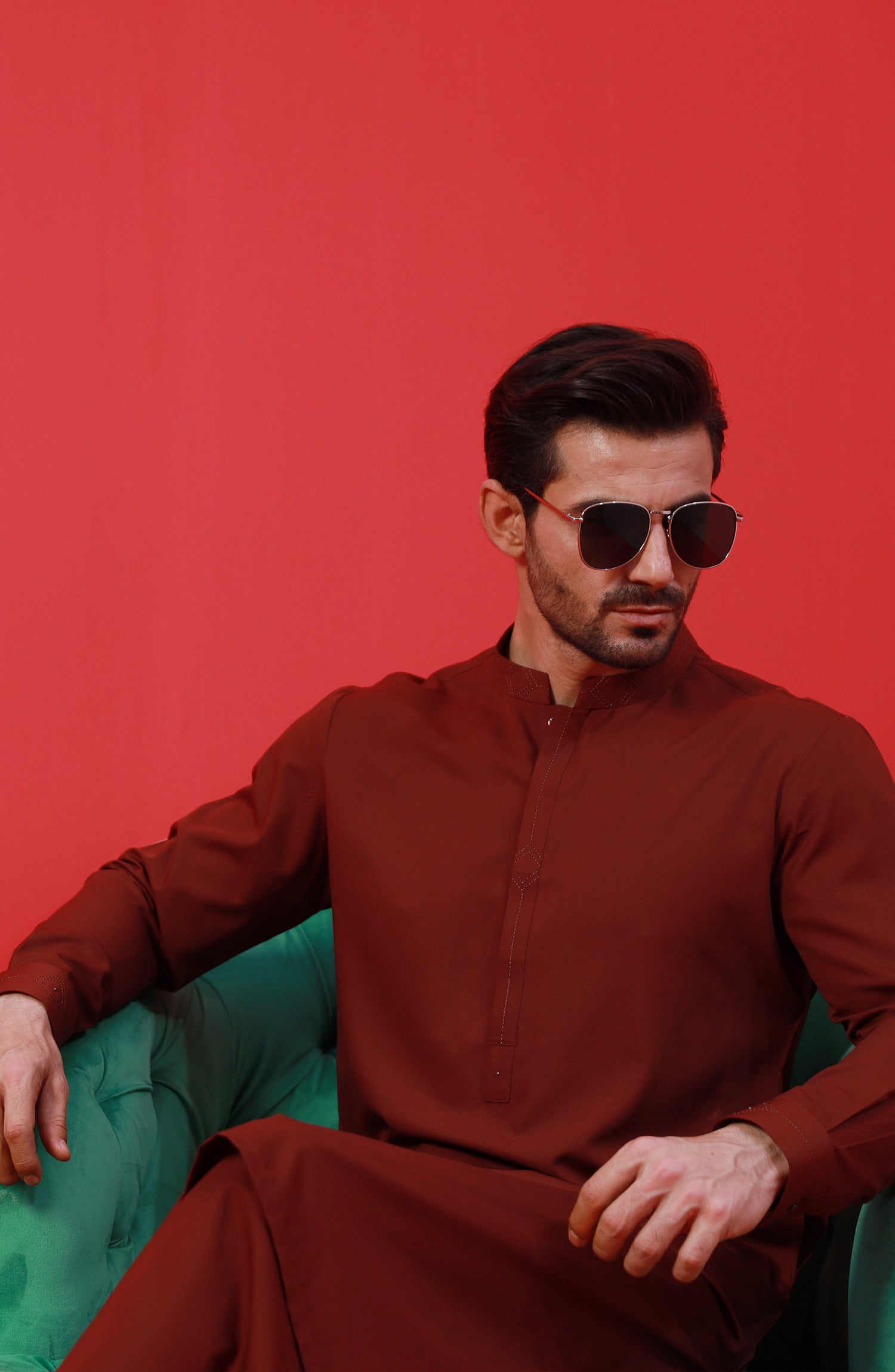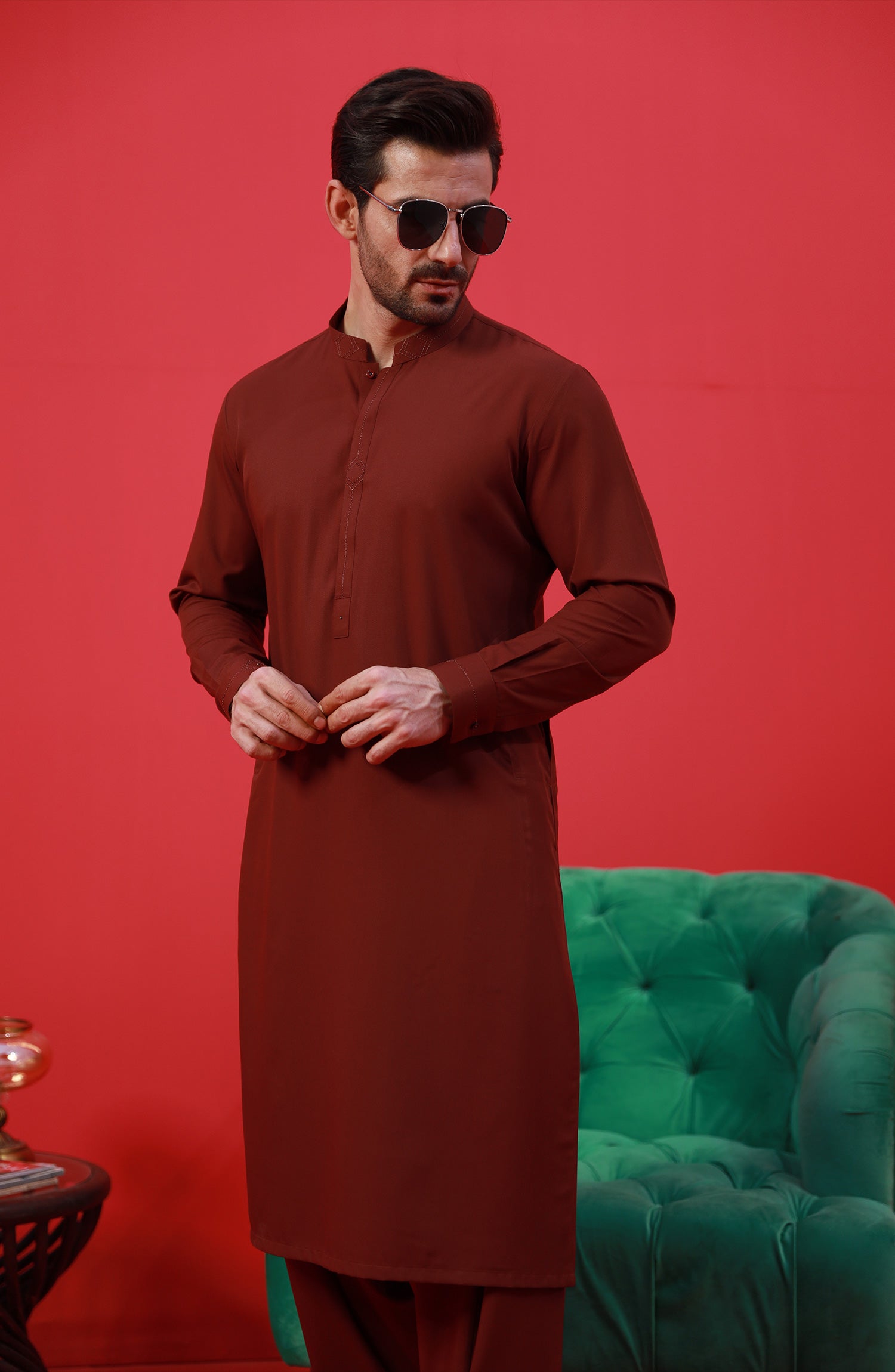 FESTIVE'23 MEN KAMEEZ SHALWAR CASUAL MAROON