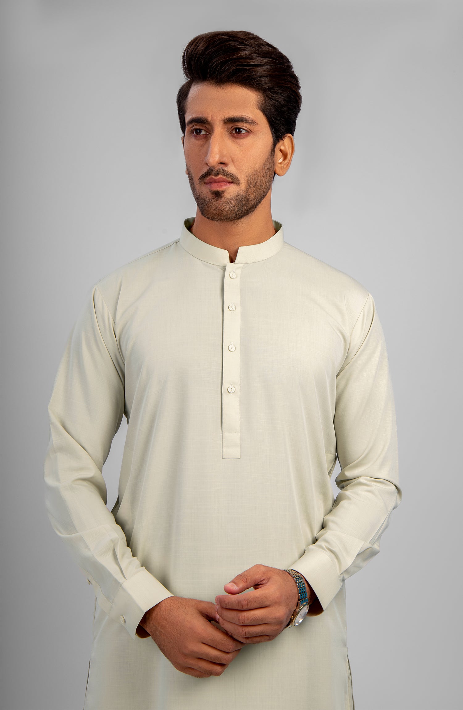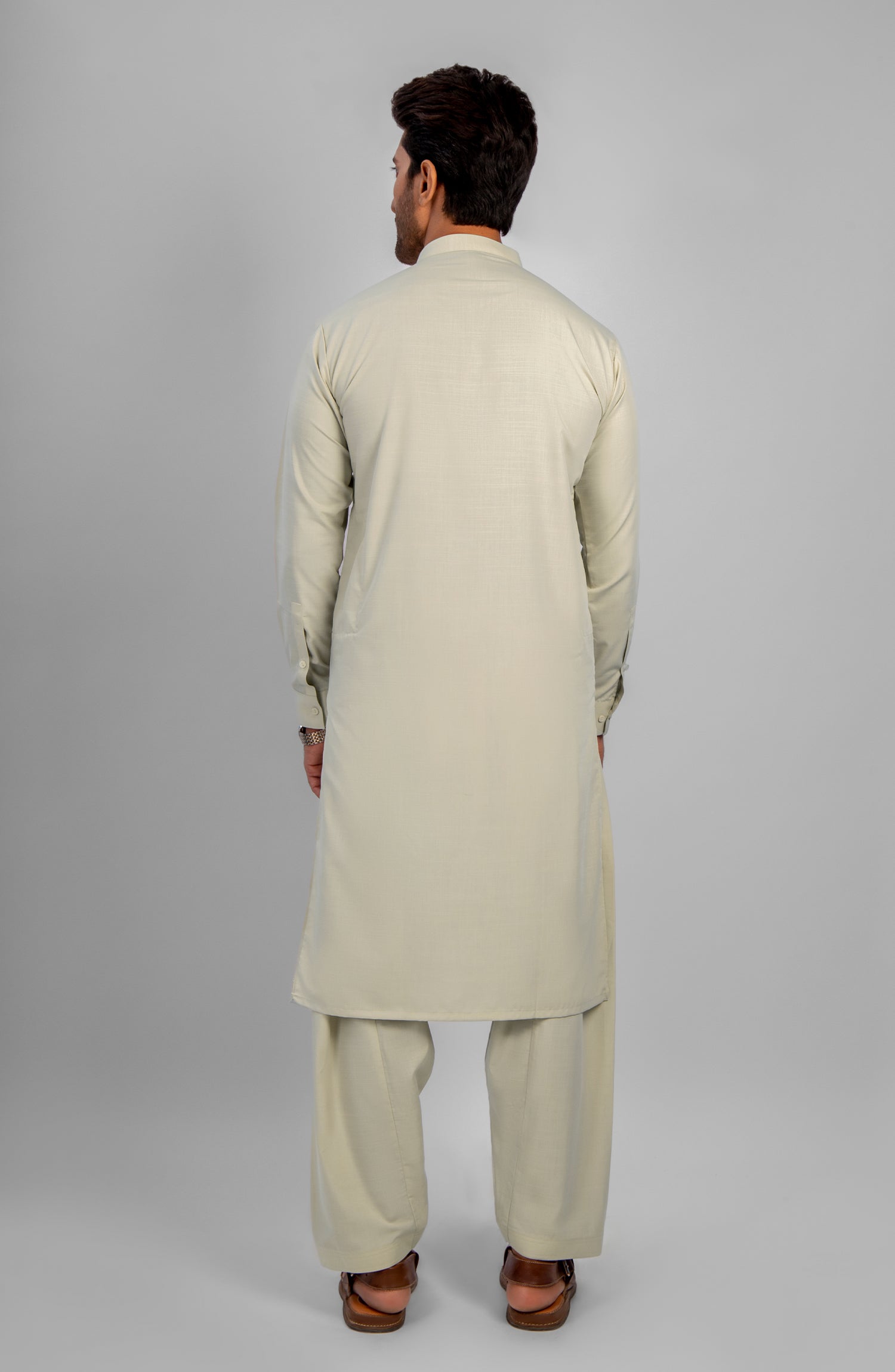 FESTIVE'23 MEN KAMEEZ SHALWAR PLAIN LIGHT CREAM