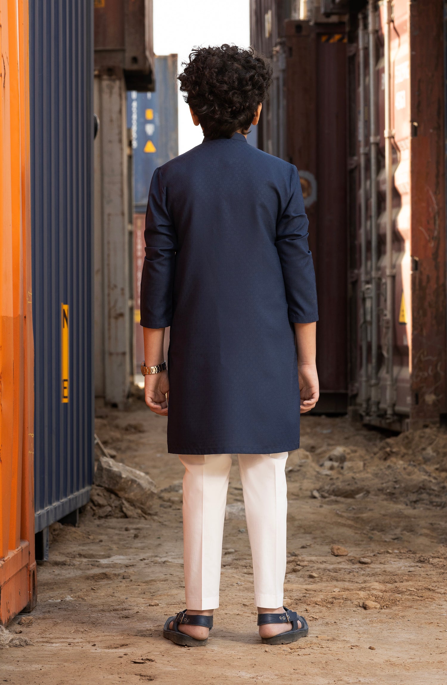 INK-BLUE BLENDED EMBROIDERED KURTA