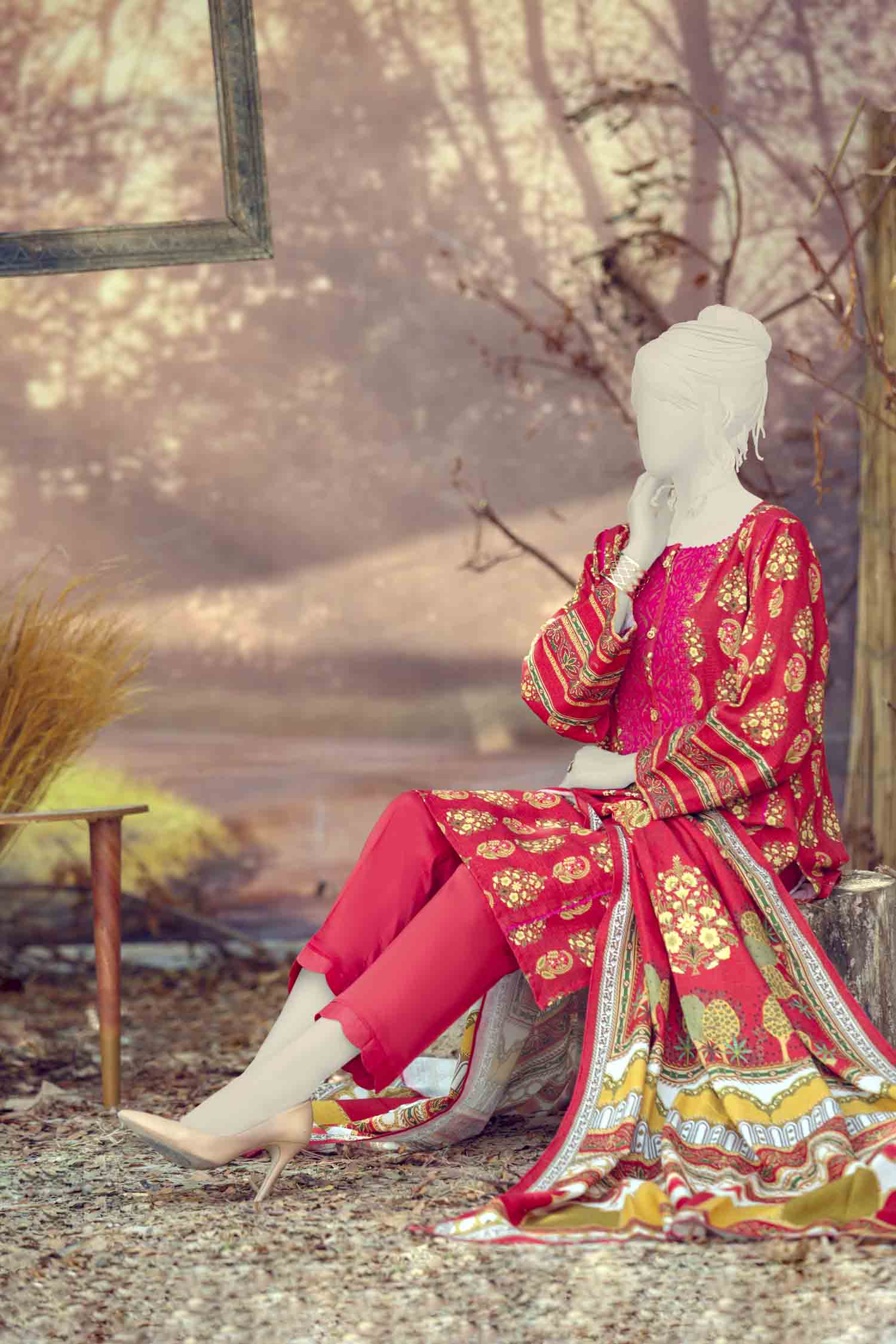 Shirt: Embroidered Printed Khaddar (Digital)