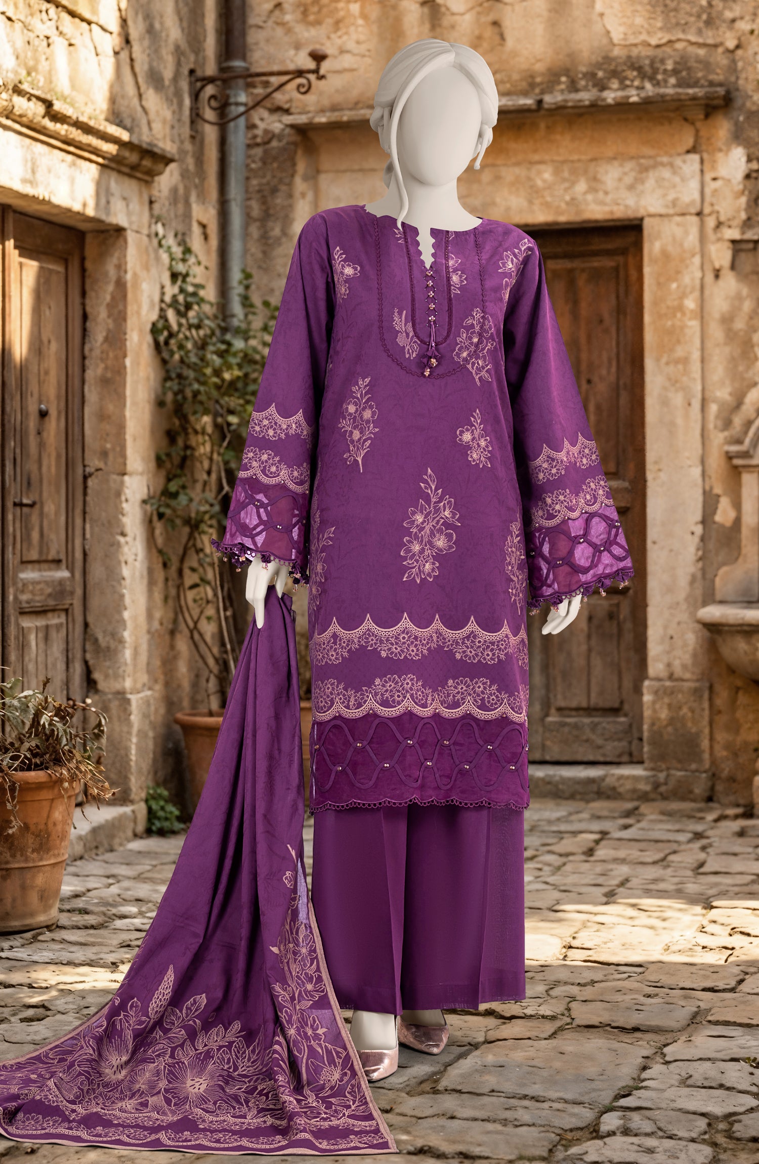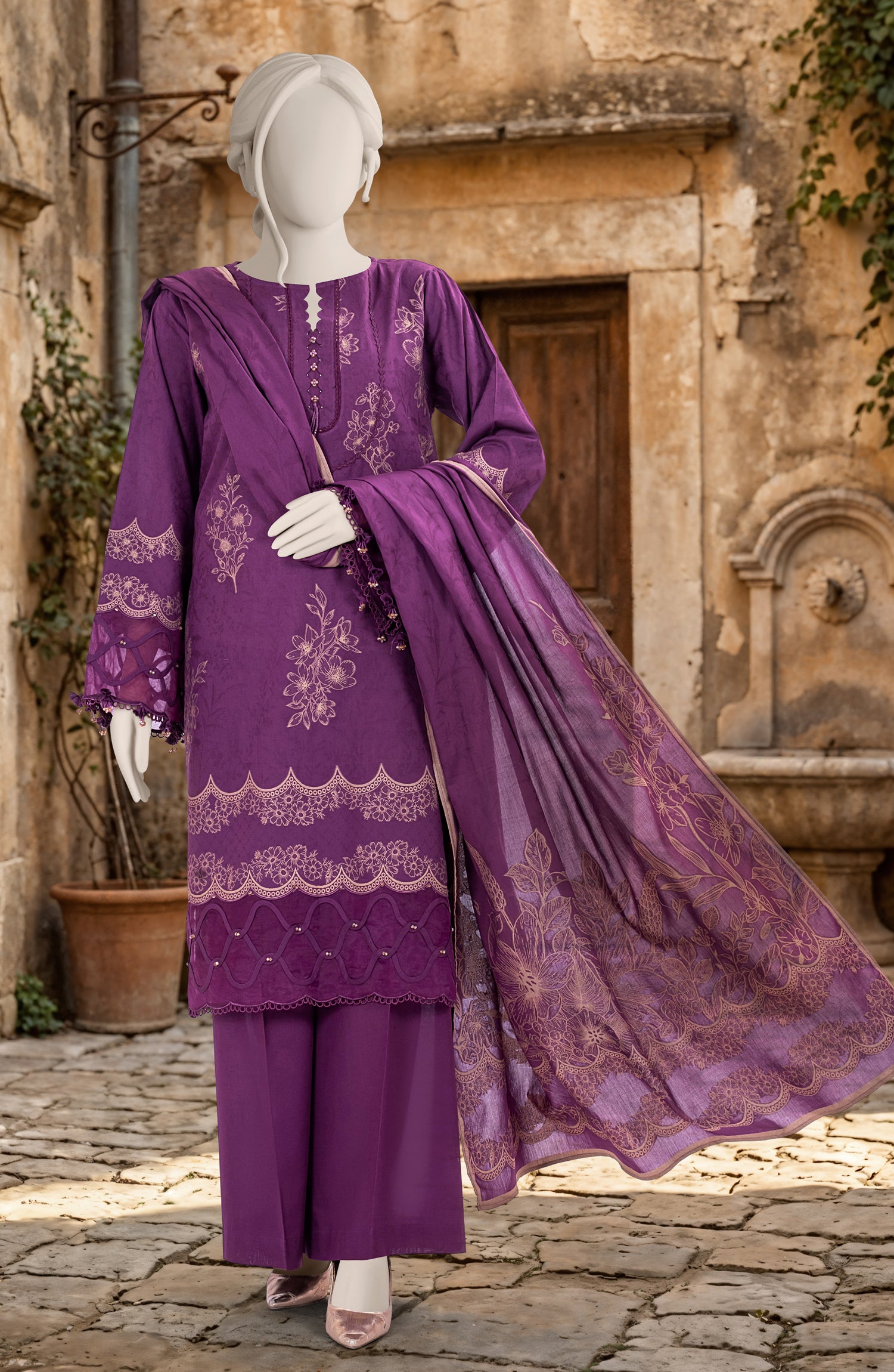 (2.50 Meter) Premium Dyed Jacquard Dupatta