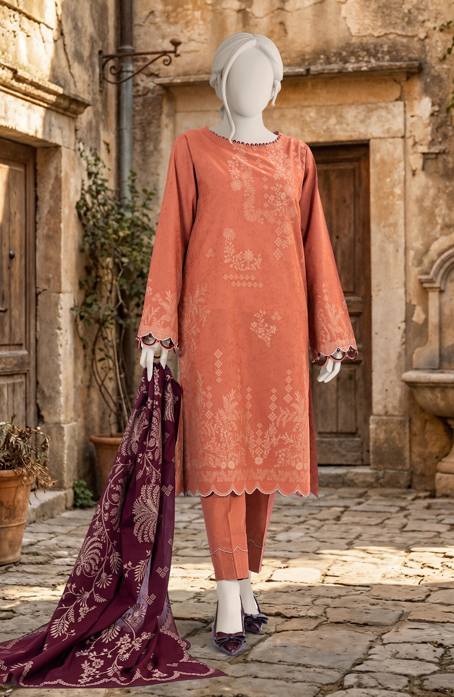 (2.50 Meter) Premium Dyed Jacquard Dupatta