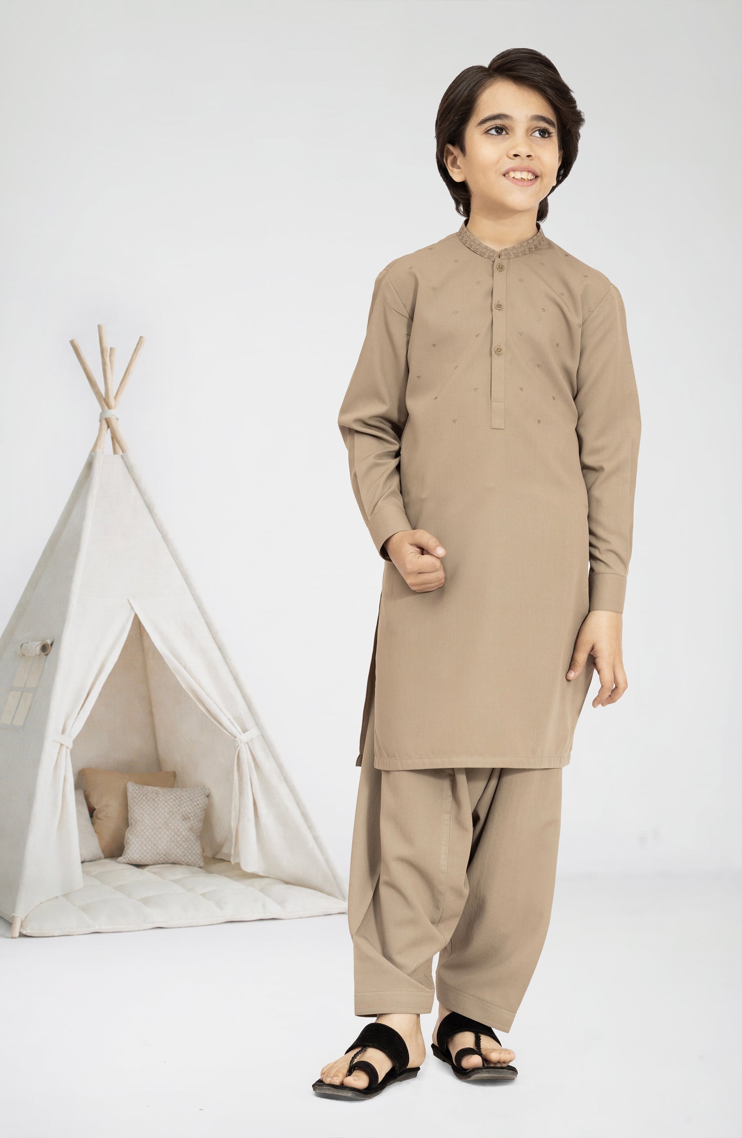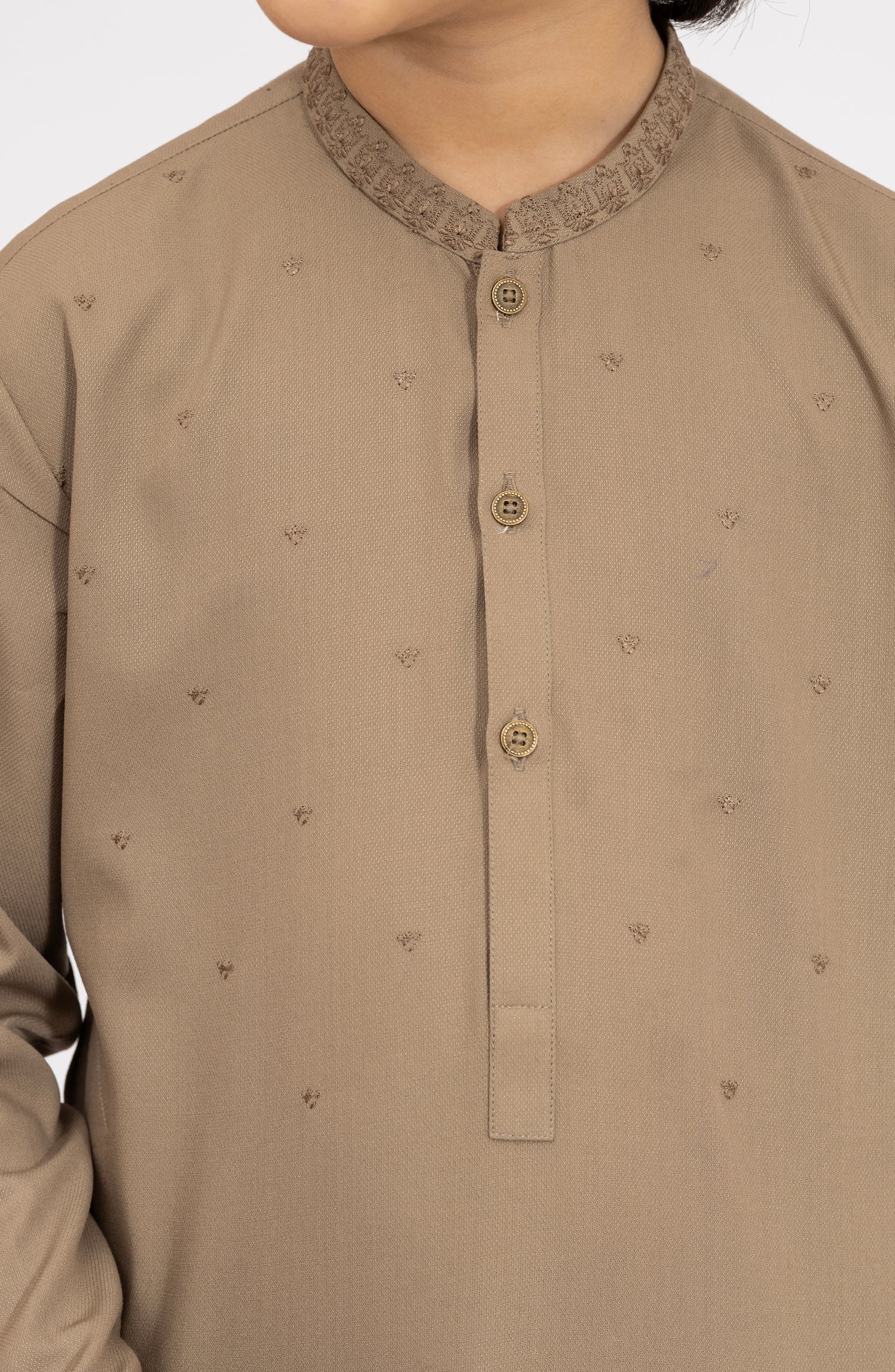KHAKI BLENDED EMBROIDERED KAMEEZ SHALWAR