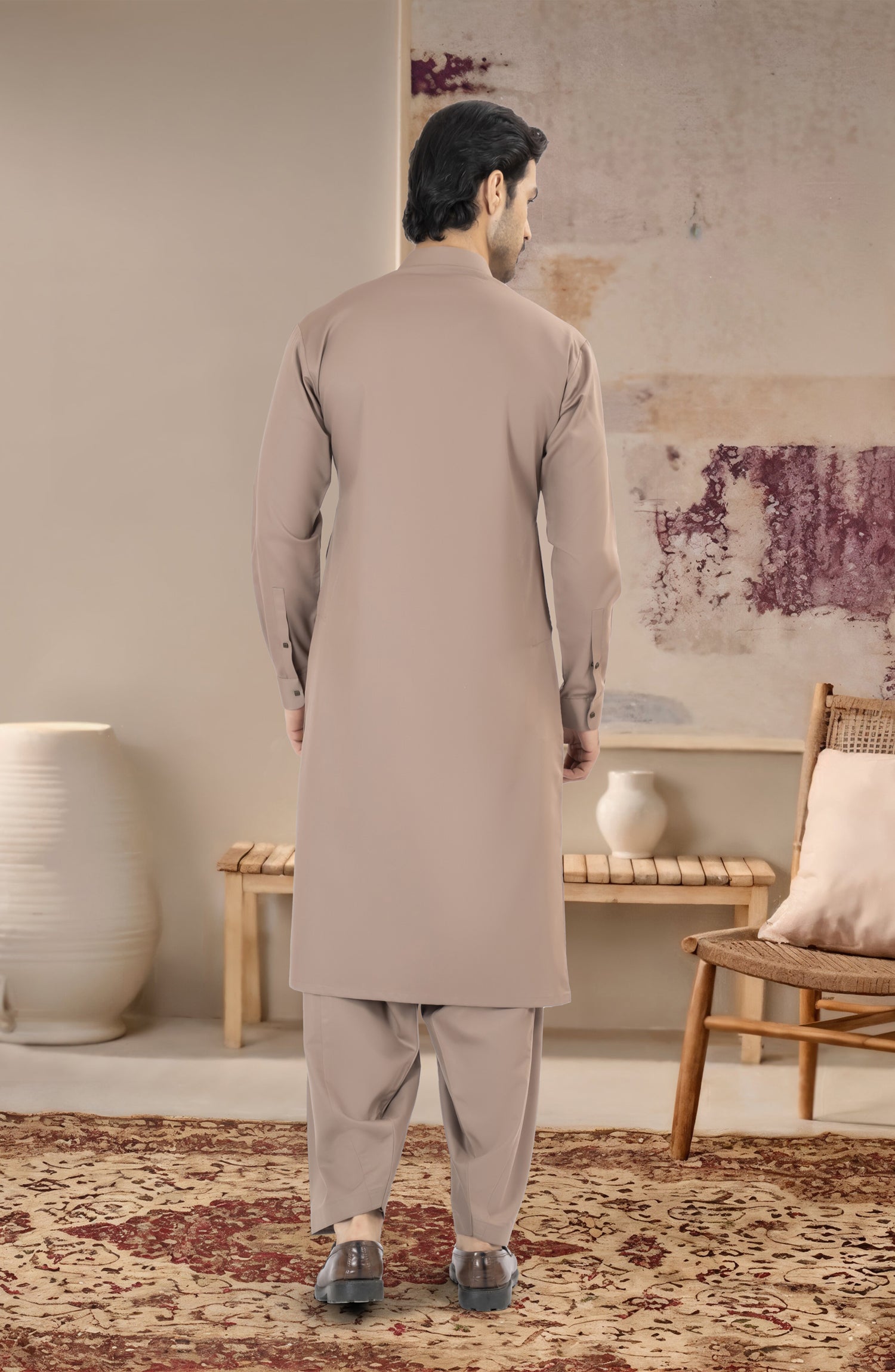 KHAKI BLENDED KAMEEZ SHALWAR