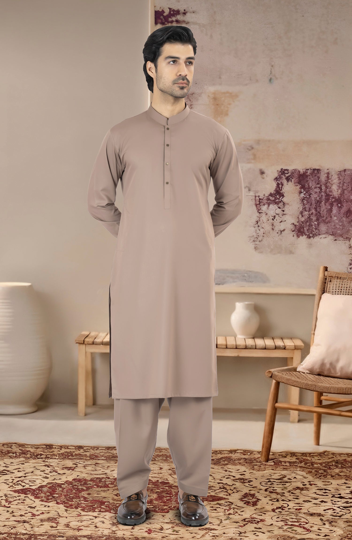 KHAKI BLENDED KAMEEZ SHALWAR