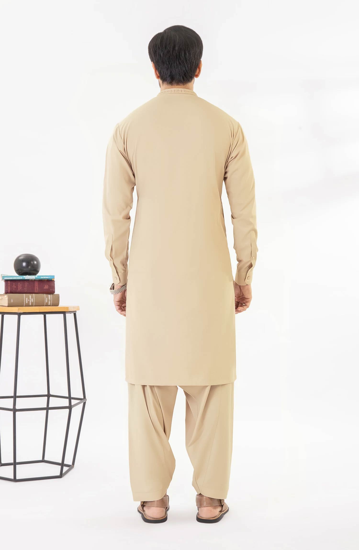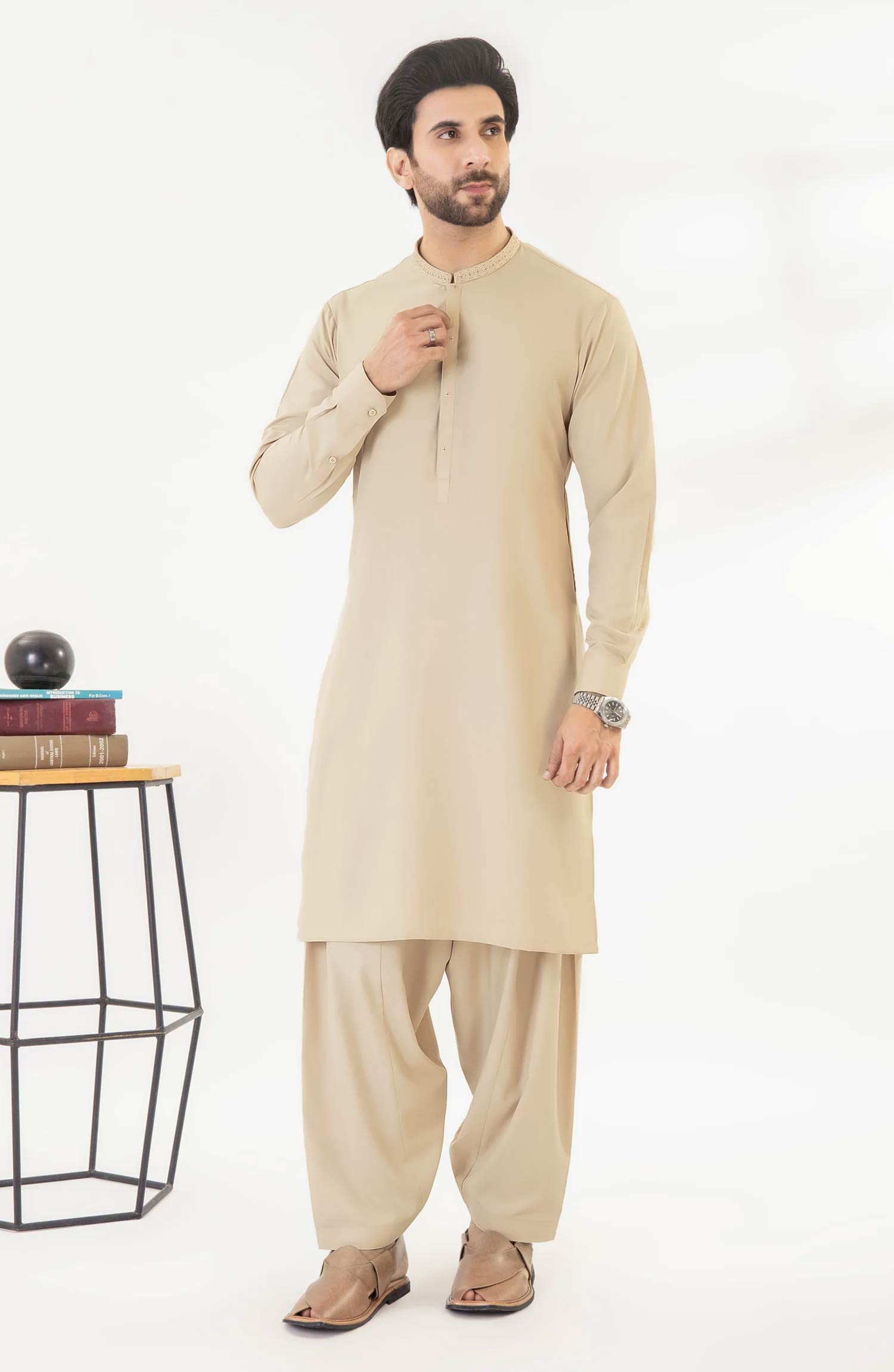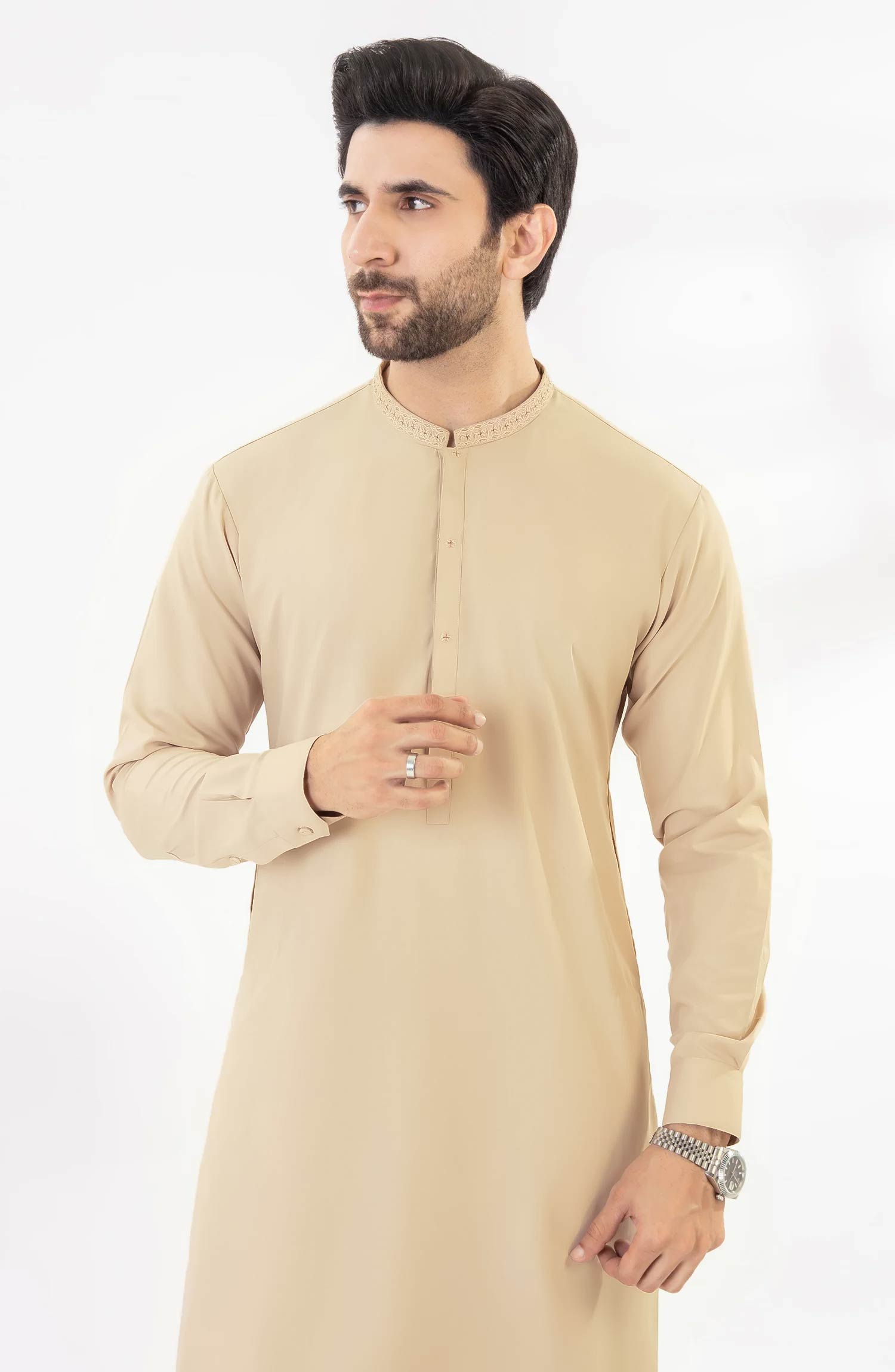 LIGHT BEIGE EMBROIDERED BLENDED KAMEEZ SHALWAR