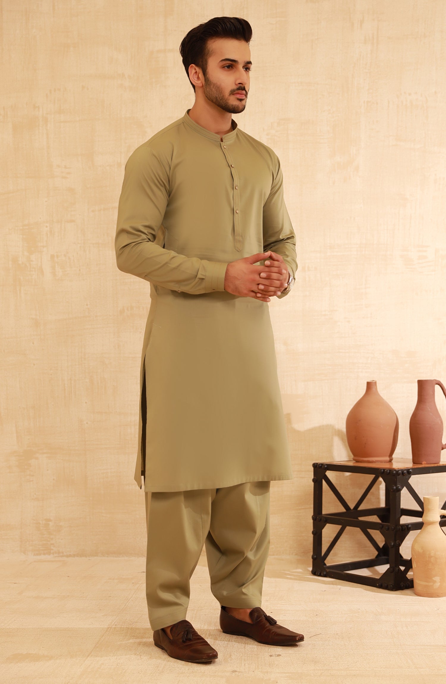 MEN KAMEEZ SHALWAR LIGHT OLIVE